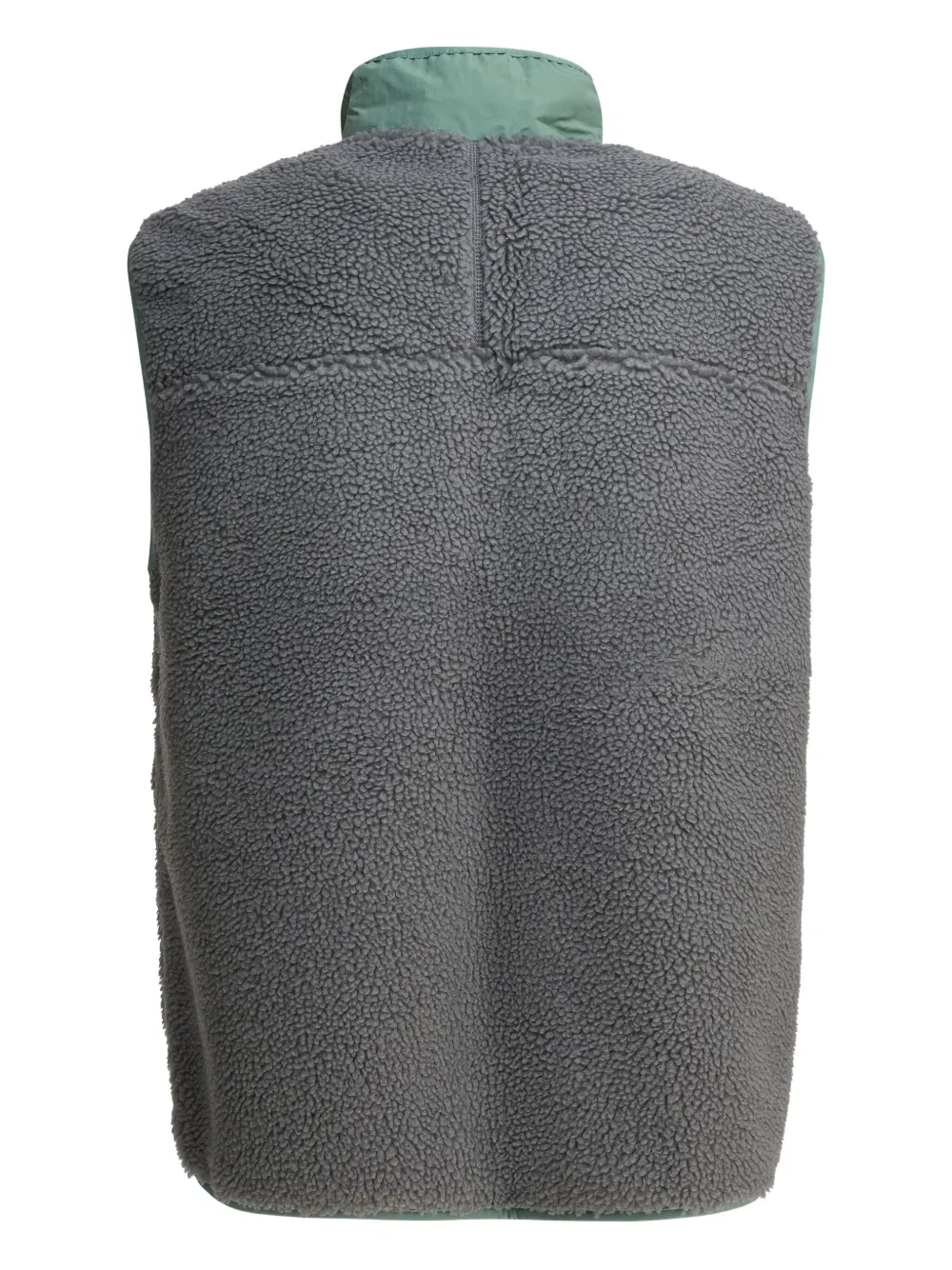 серый жилет без рукавов с высоким воротником, застежкой-молнией, нагрудным карманом и нашивкой с логотипом