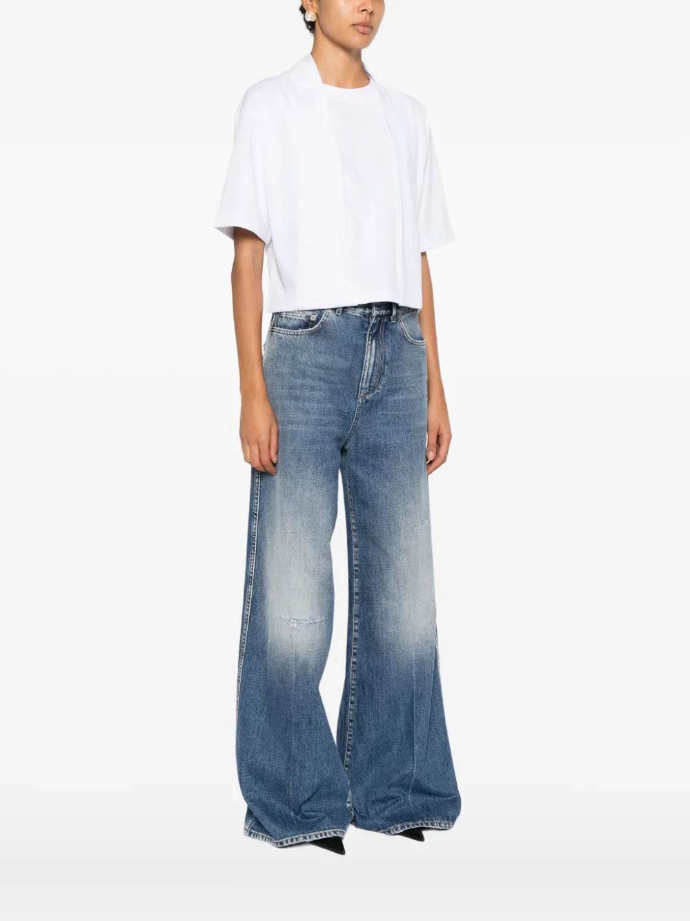 оптически белый хлопок, короткие рукава, высокий воротник, деталь на передней панели, прямой подол