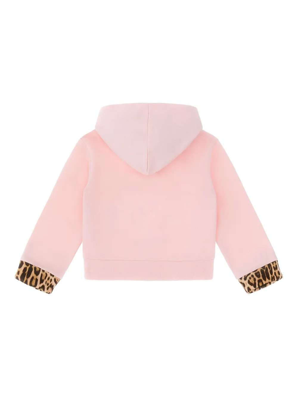 светло-розовый хлопковый худи с цветочным принтом, манжетами с принтом под шкуру ягуара, длинными рукавами и капюшоном