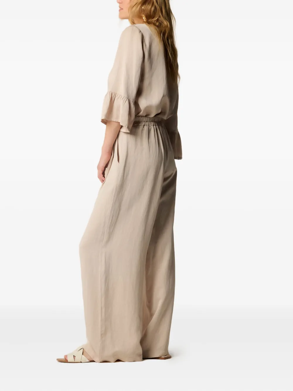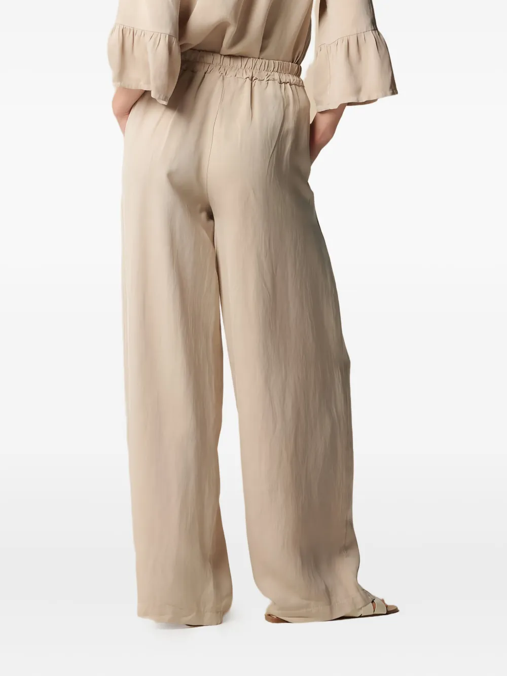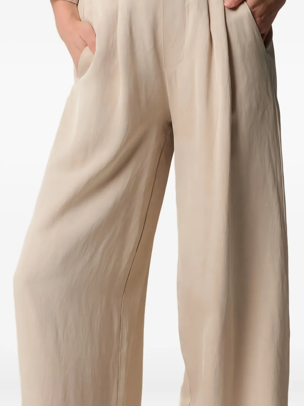 светло-бежевый, с складками, боковыми карманами, завышенной талией