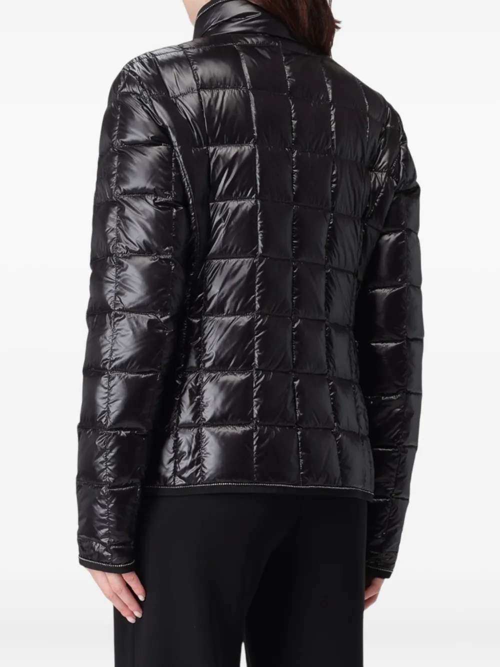 черный стеганый дизайн, застежка-молния, длинные рукава