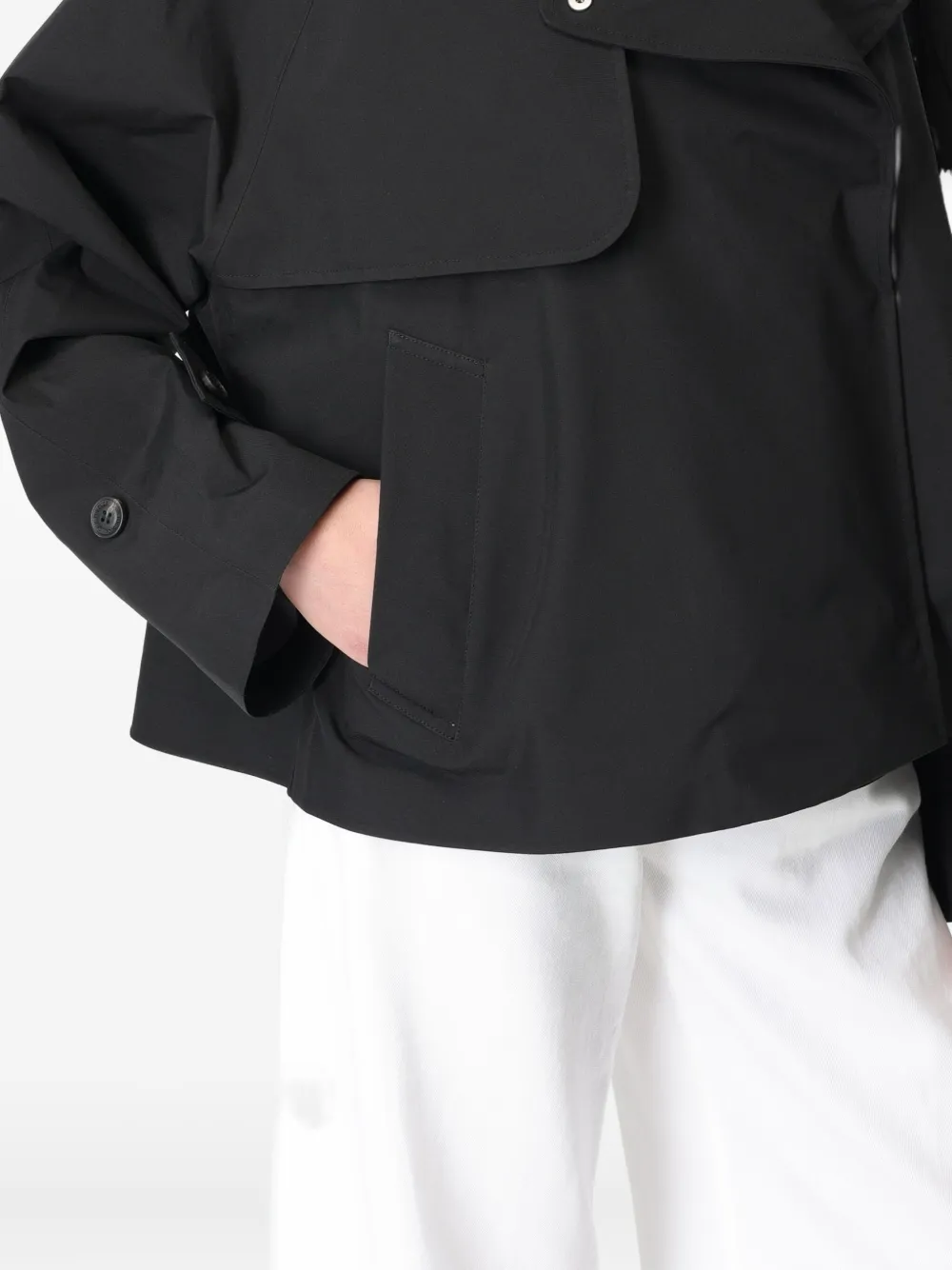 черный цвет, застежка на кнопки, длинные рукава, боковые карманы