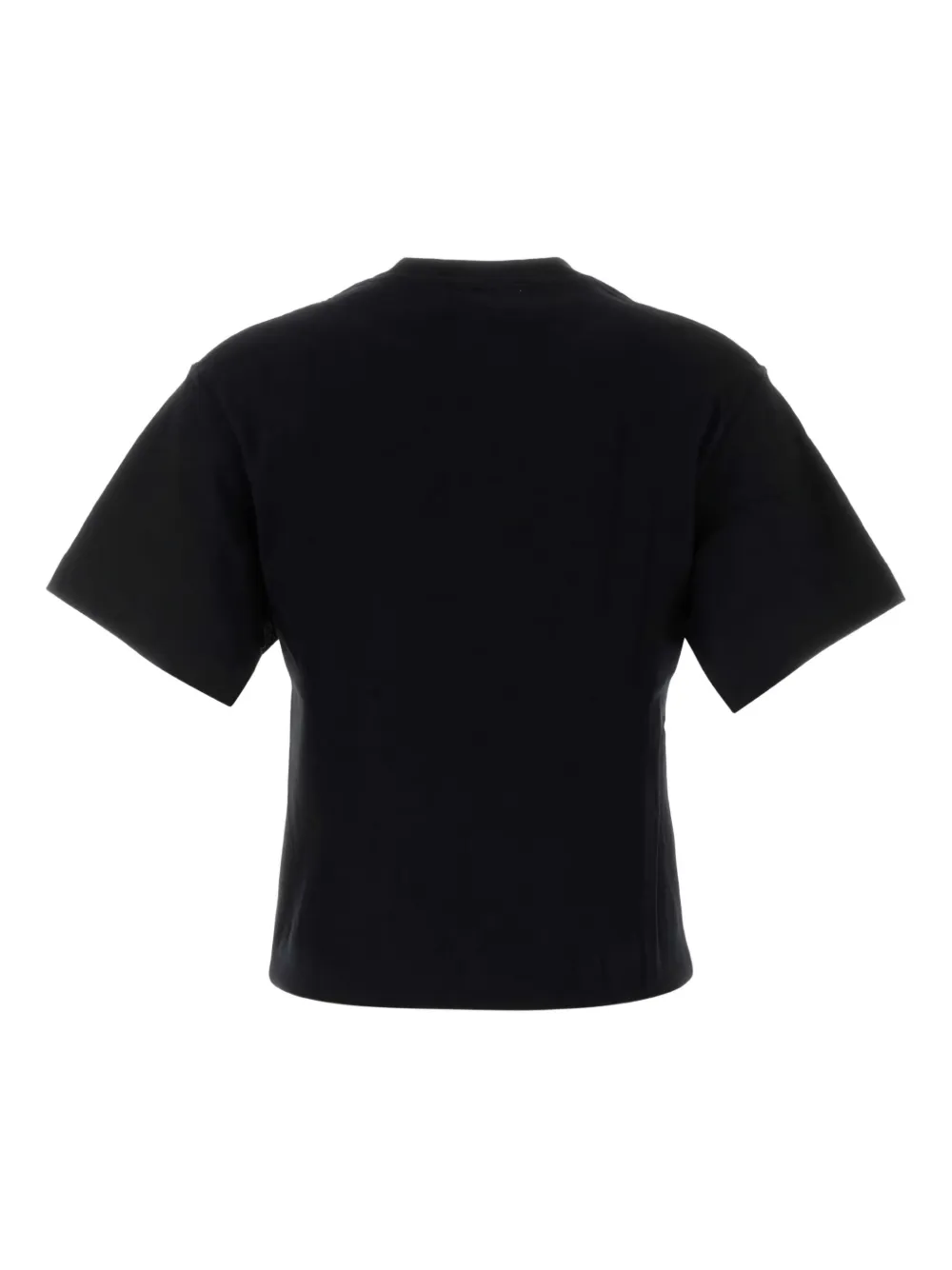 черная футболка с короткими рукавами и декором в виде выреза-капельки