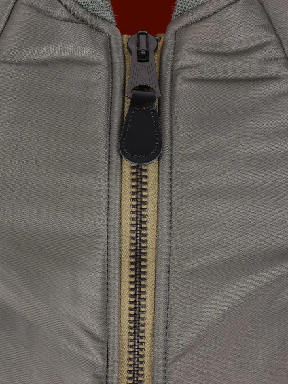 светло-зеленая куртка-бомбер с воротником, двусторонней молнией, накладным карманом и застежками-молниями на рукавах