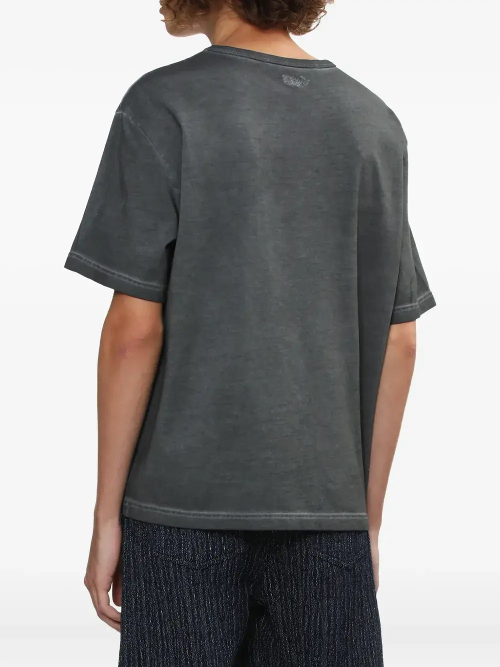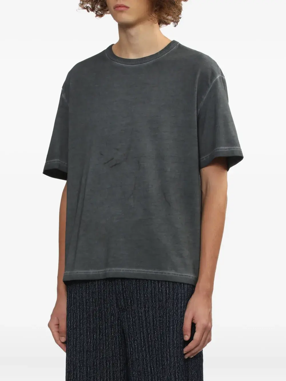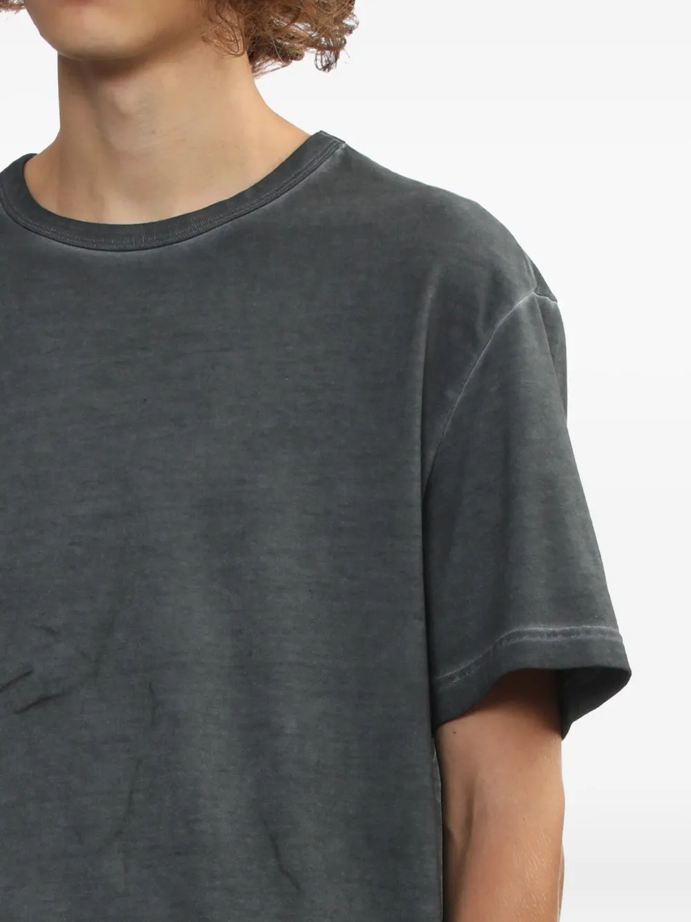 выстиранный черный, короткие рукава, круглый вырез, тональная строчка, хлопок