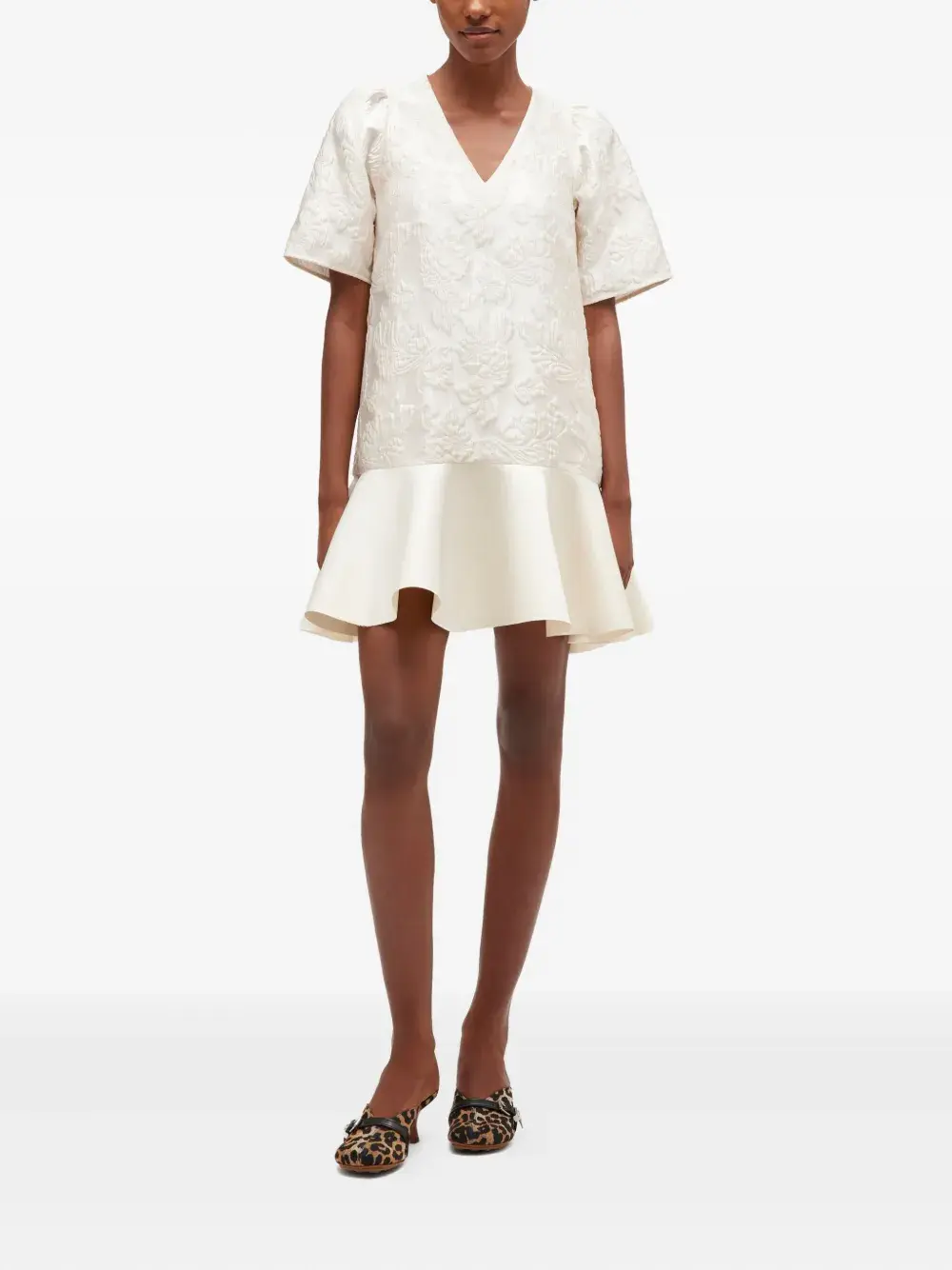 Платье мини с V-образным вырезом Ganni, белый