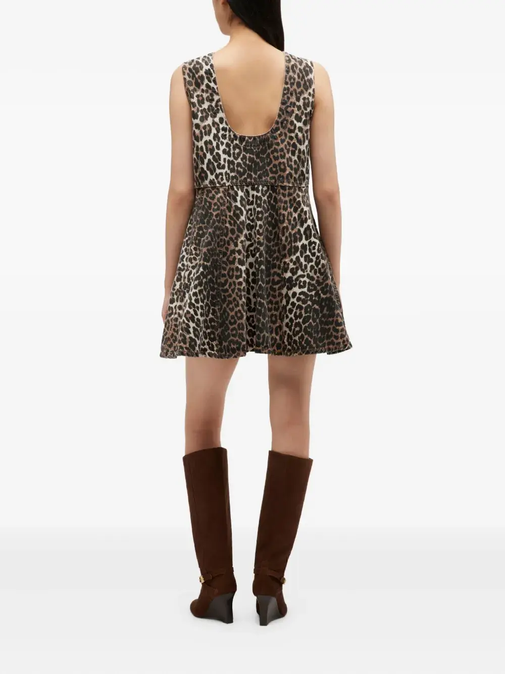 Платье мини с леопардовым принтом Ganni, коричневый