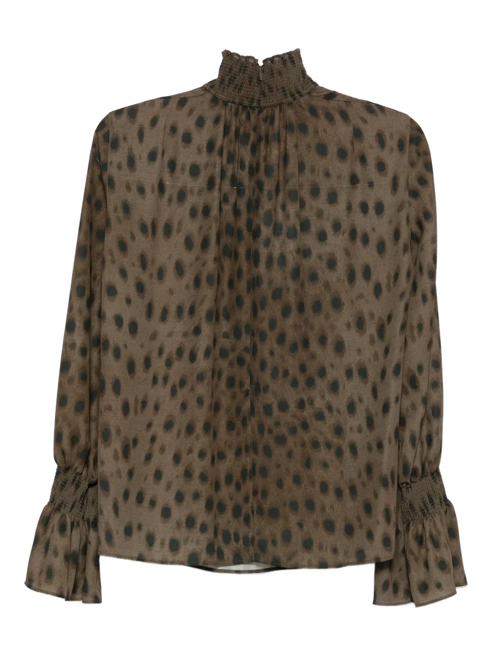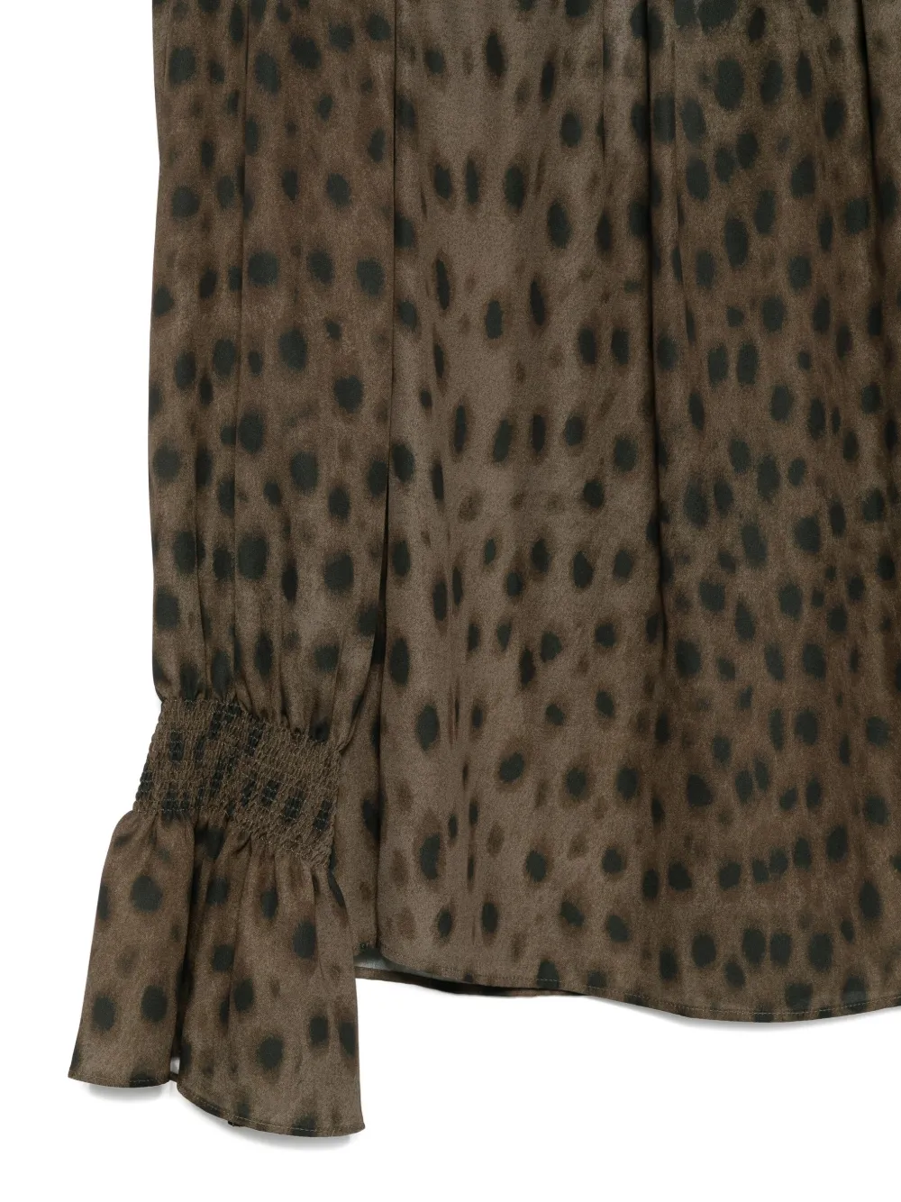 коричневый с анималистичным принтом, оборчатой горловиной и длинными рукавами