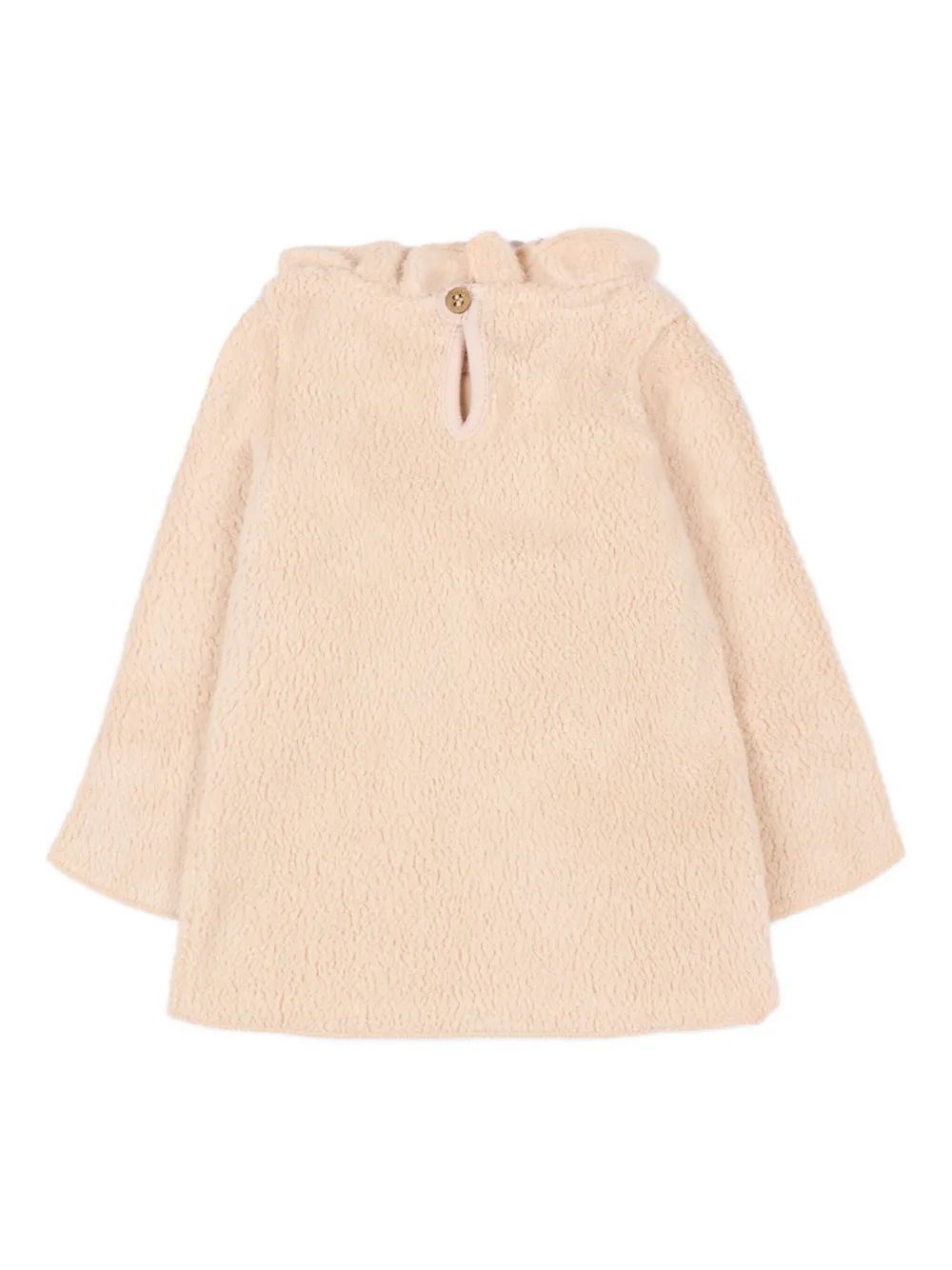 розовый цвет, оборчатый воротник, длинные рукава, застёжка на пуговицы сзади