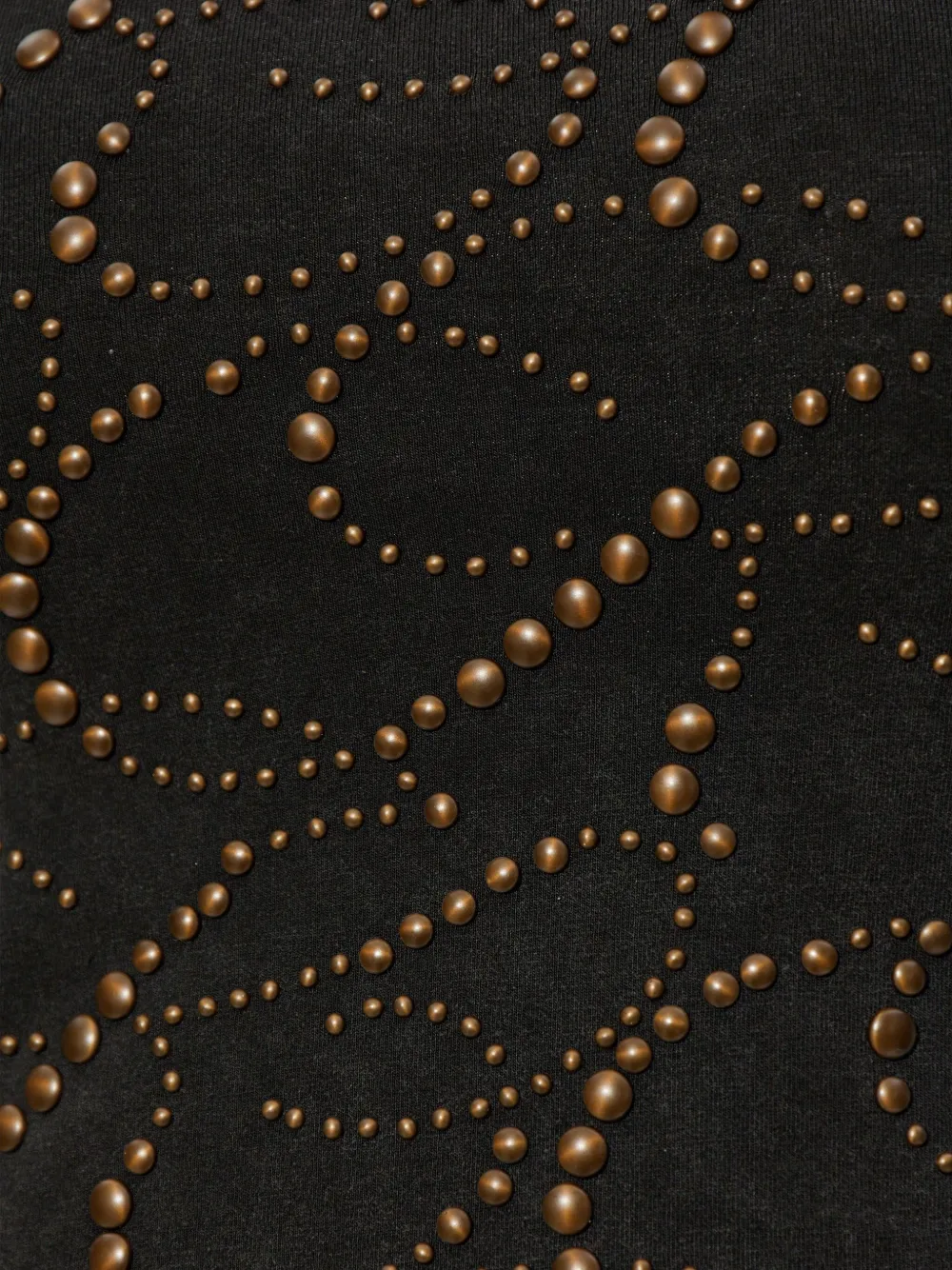 черный топ с украшением в виде заклёпок, круглым вырезом и длинными рукавами