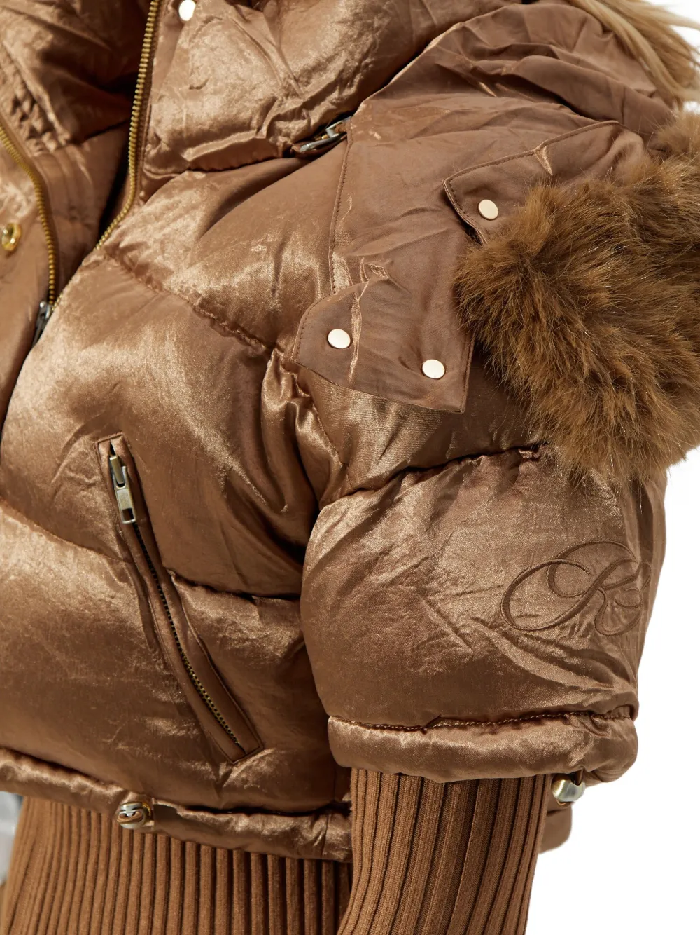 коричневый цвет, отделка из искусственного меха, застежка-молния, застежка на кнопки спереди, передние карманы на молнии