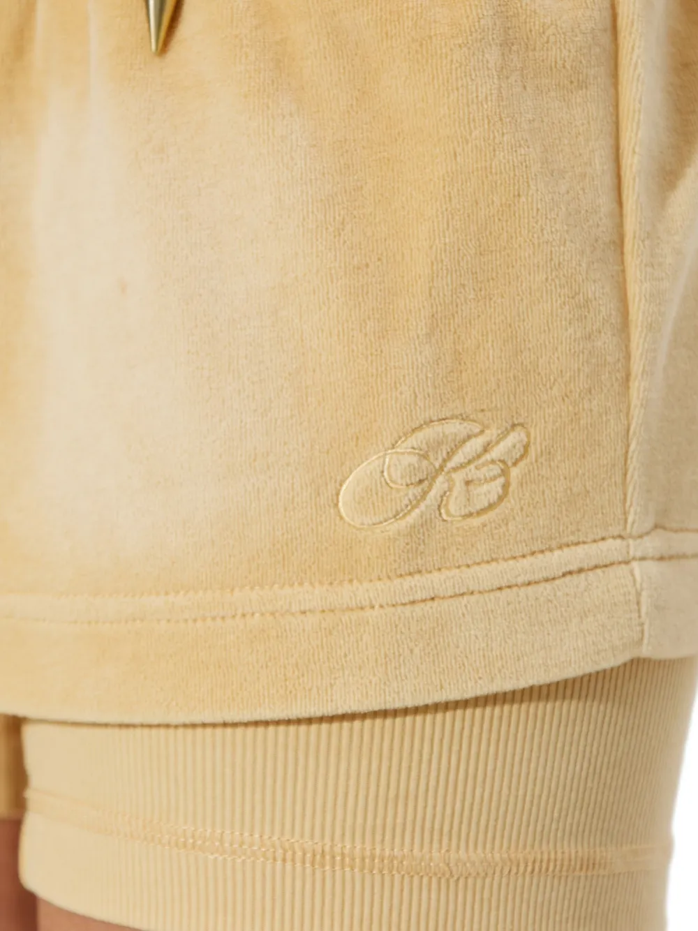 светло-жёлтый цвет, застёжка на шнурке, фурнитура золотистого оттенка, многослойный дизайн, рубчатые детали, вышитый логотип