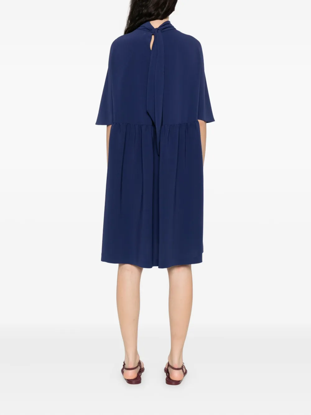 Платье с высоким воротником и сборками Talbot Runhof, синий