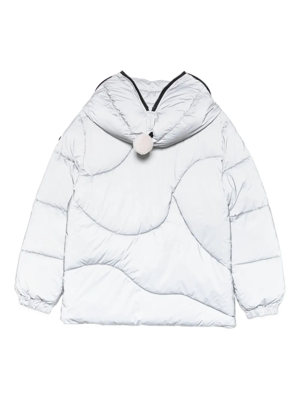 Серебристая толстовка с объемной простежкой, застежкой-молнией спереди, длинными рукавами и отделкой в виде помпонов