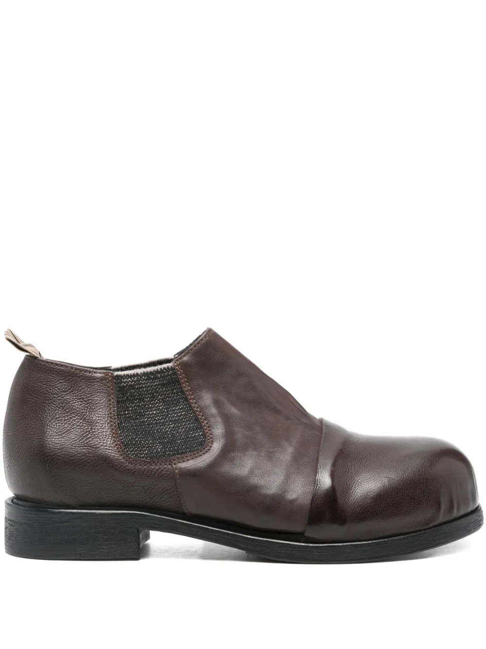 коричневая петля на задней части, многослойный дизайн, эластичные боковые вставки, плоская подошва, круглый носок
