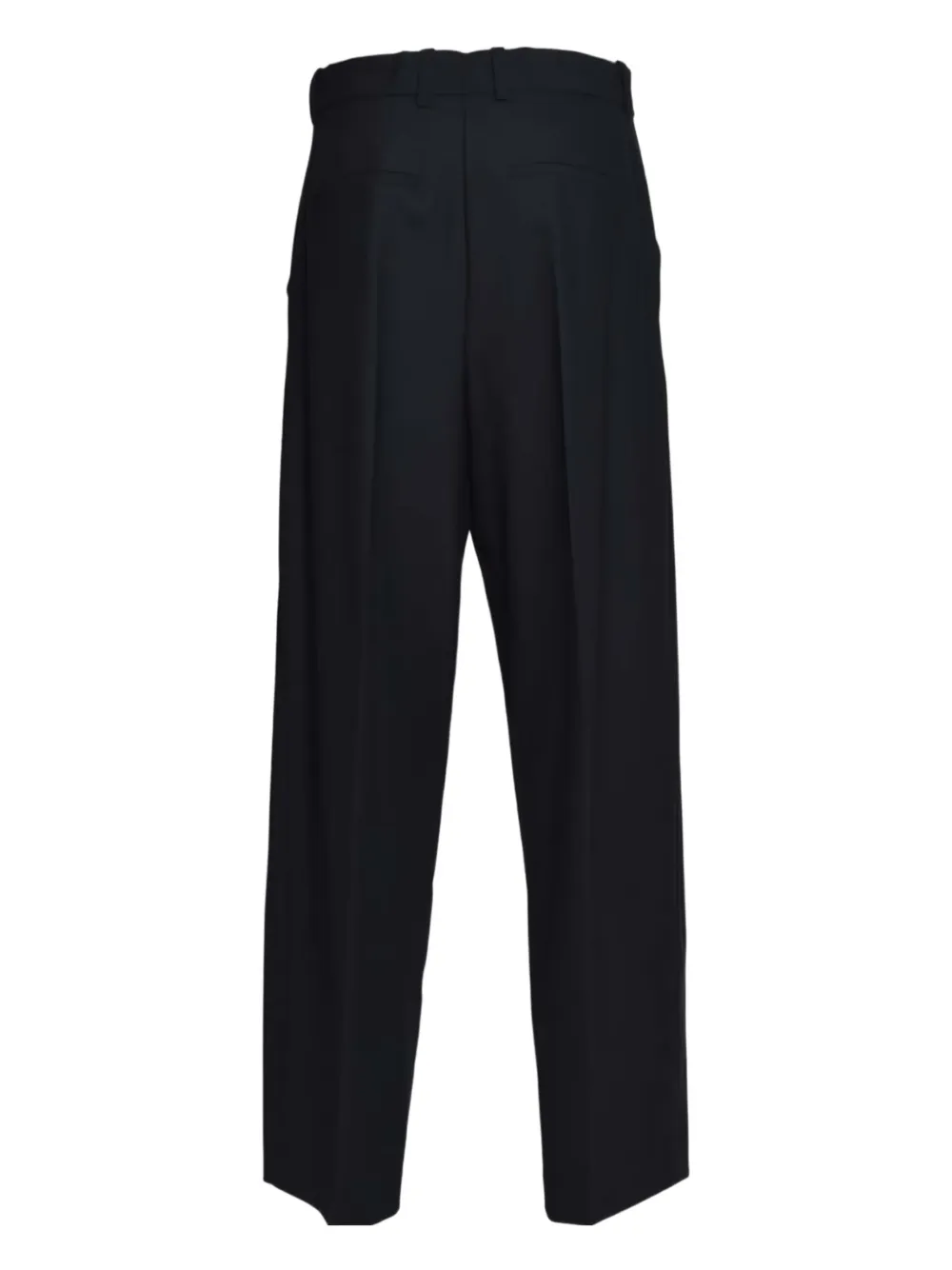 синие шлевки для ремня, застёжка на пуговицу, задние прорезные карманы, складки спереди