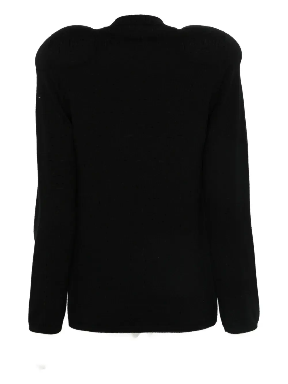 черные подплечники, круглый вырез, длинные рукава, вязка в рубчик, прямой край