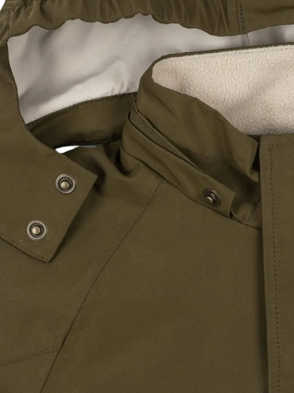 зелёный капюшон, передний клапан на кармане, эластичные манжеты, застёжка на кнопки, тональная строчка
