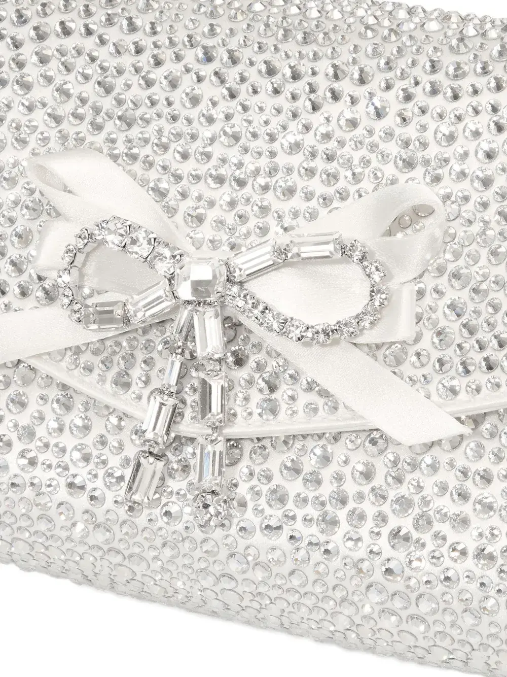 слоново-костяной цвет, украшение кристаллами, бантик, цепочка-ремешок, клапан сверху, застёжка на кнопку