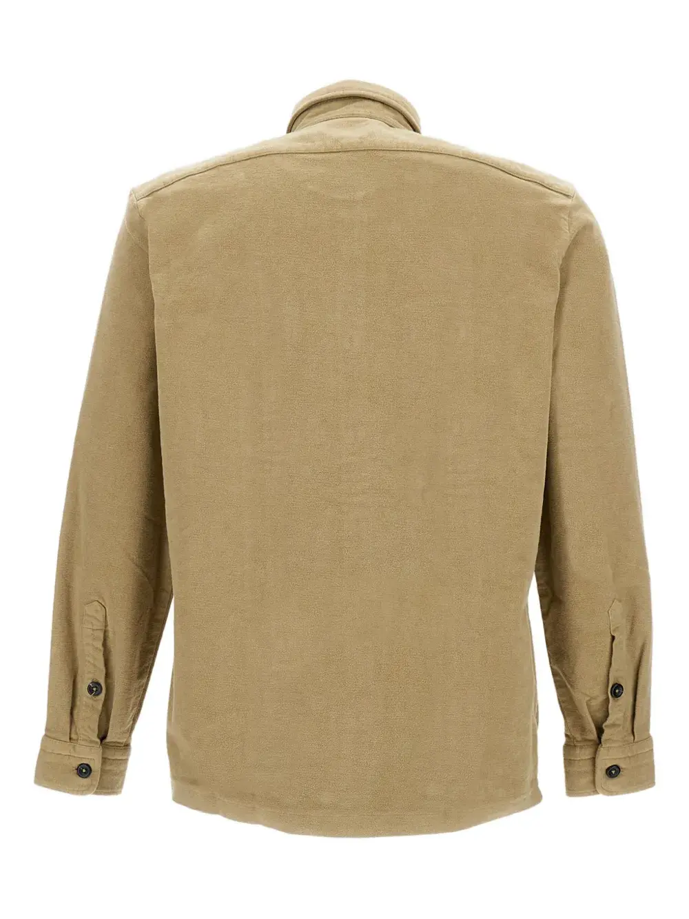 коричневая рубашка с застёжкой на пуговицы, отложным воротником, длинными рукавами, манжетами на пуговицах, нагрудными карманами