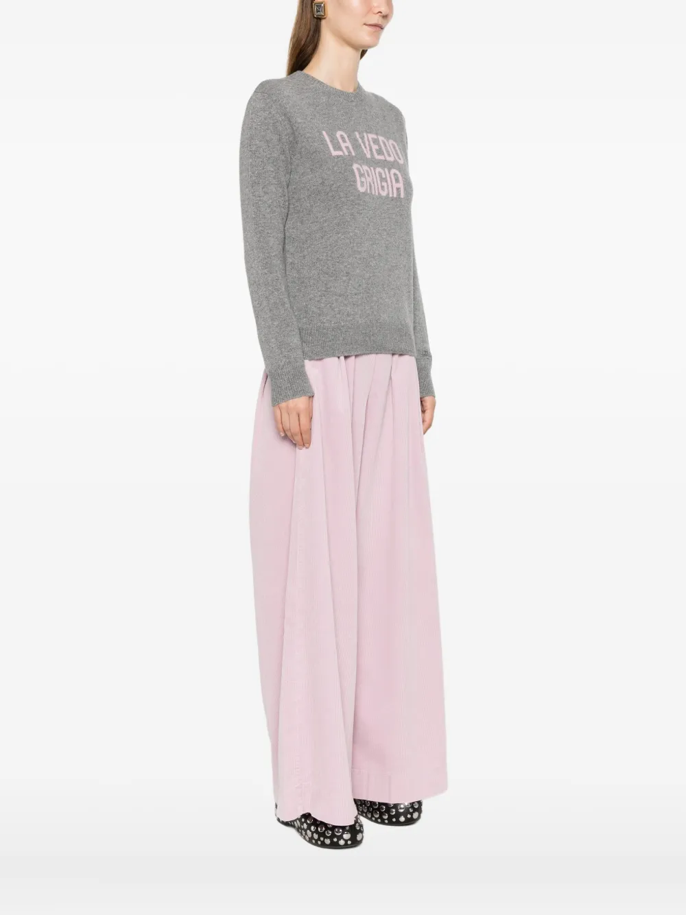 серый шерстяной свитер с круглым вырезом, длинными рукавами и ребристыми вставками