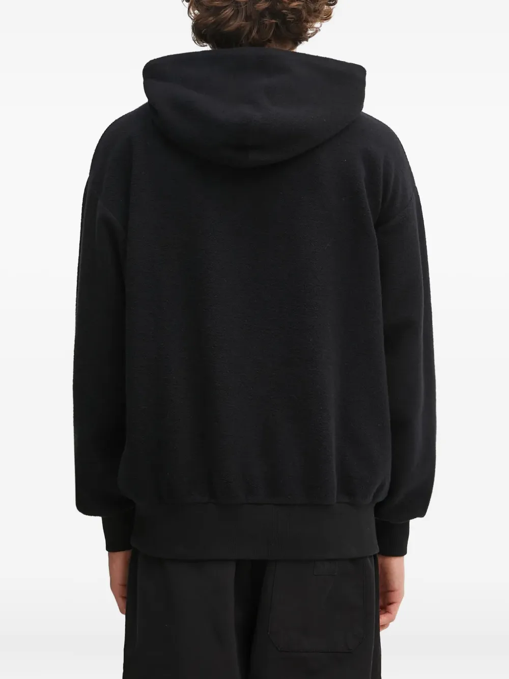 черная толстовка с вышитым логотипом, кулиской на капюшоне, ребристым нижним краем и манжетами