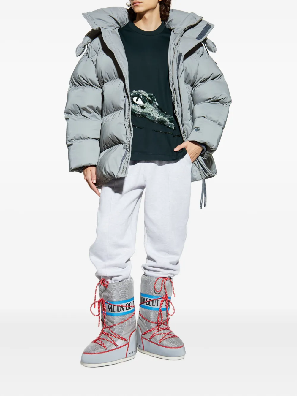 Пуховик с капюшоном Lacoste, серый 123 770₽