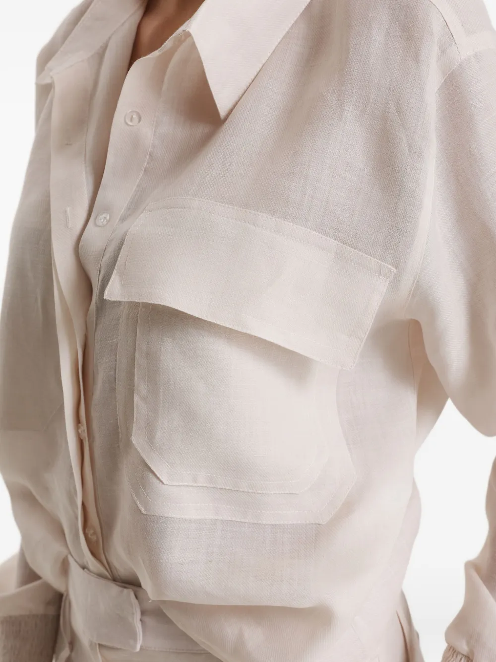 бежевый цвет, нагрудный карман, застежка на пуговицы, длинные рукава, манжеты на пуговицах