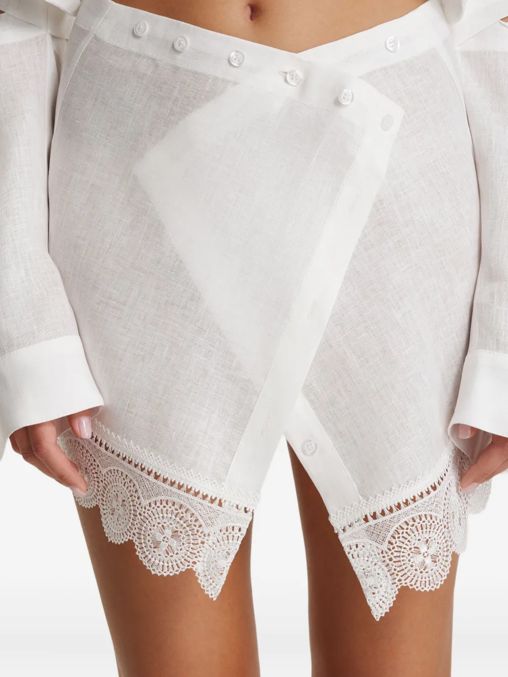 белая рубашка с кружевной отделкой, застёжкой на пуговицы, вырезными деталями, воротником и длинными рукавами