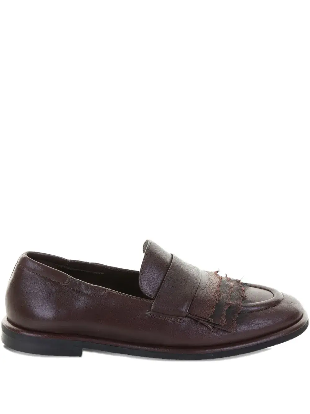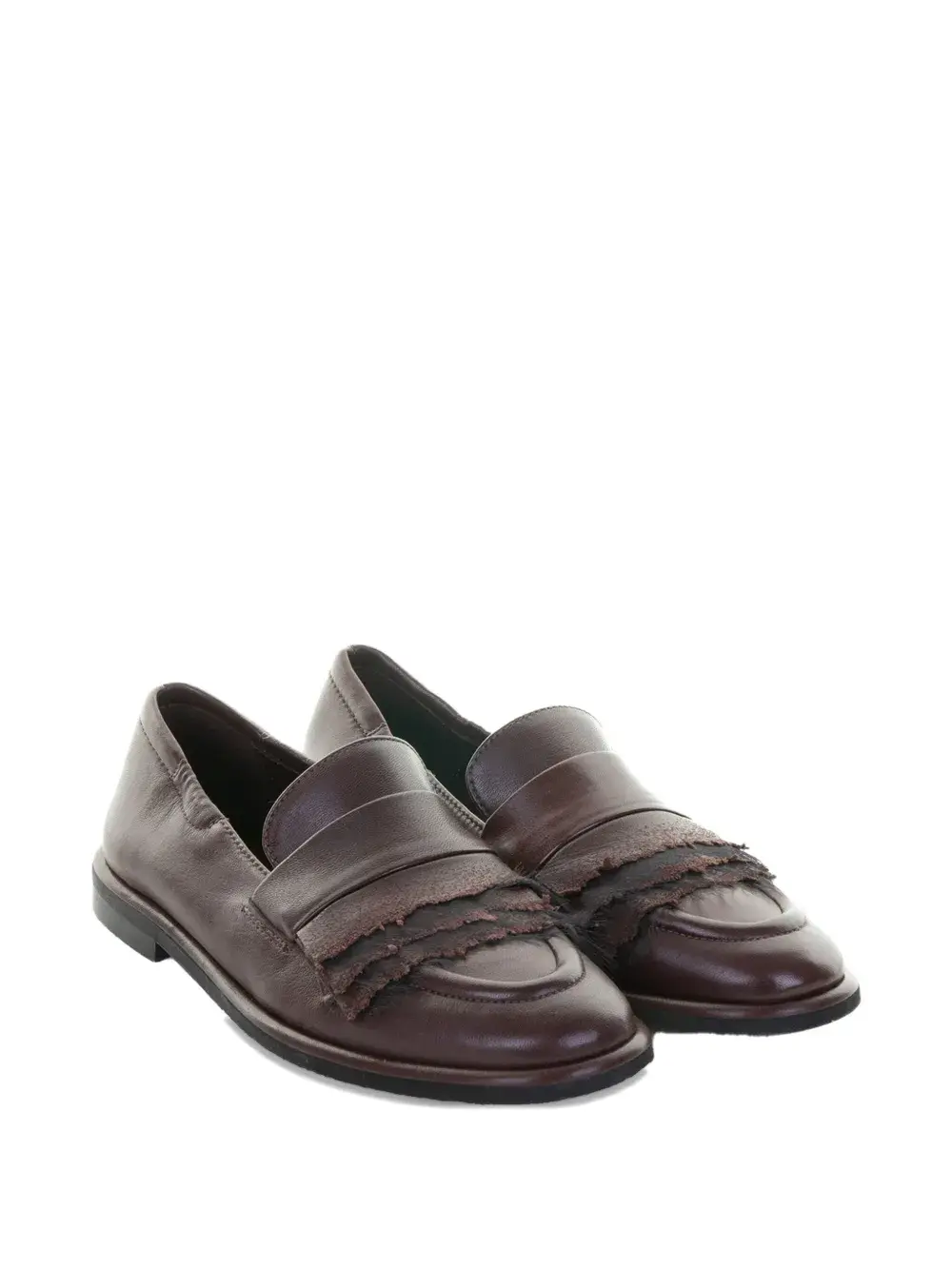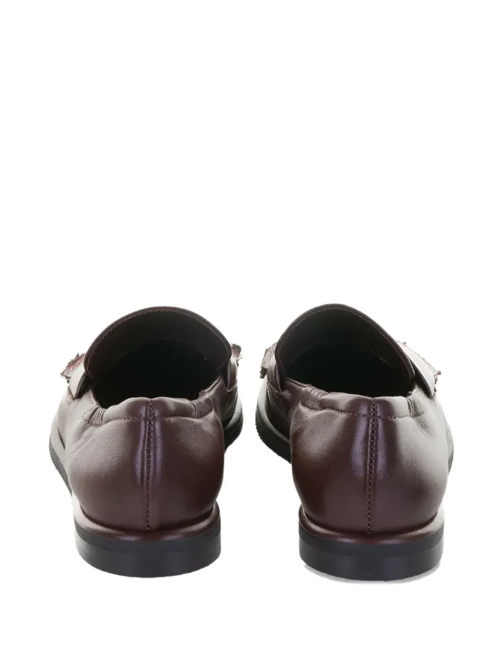 коричневые кожаные слипоны с бахромой и плоской подошвой