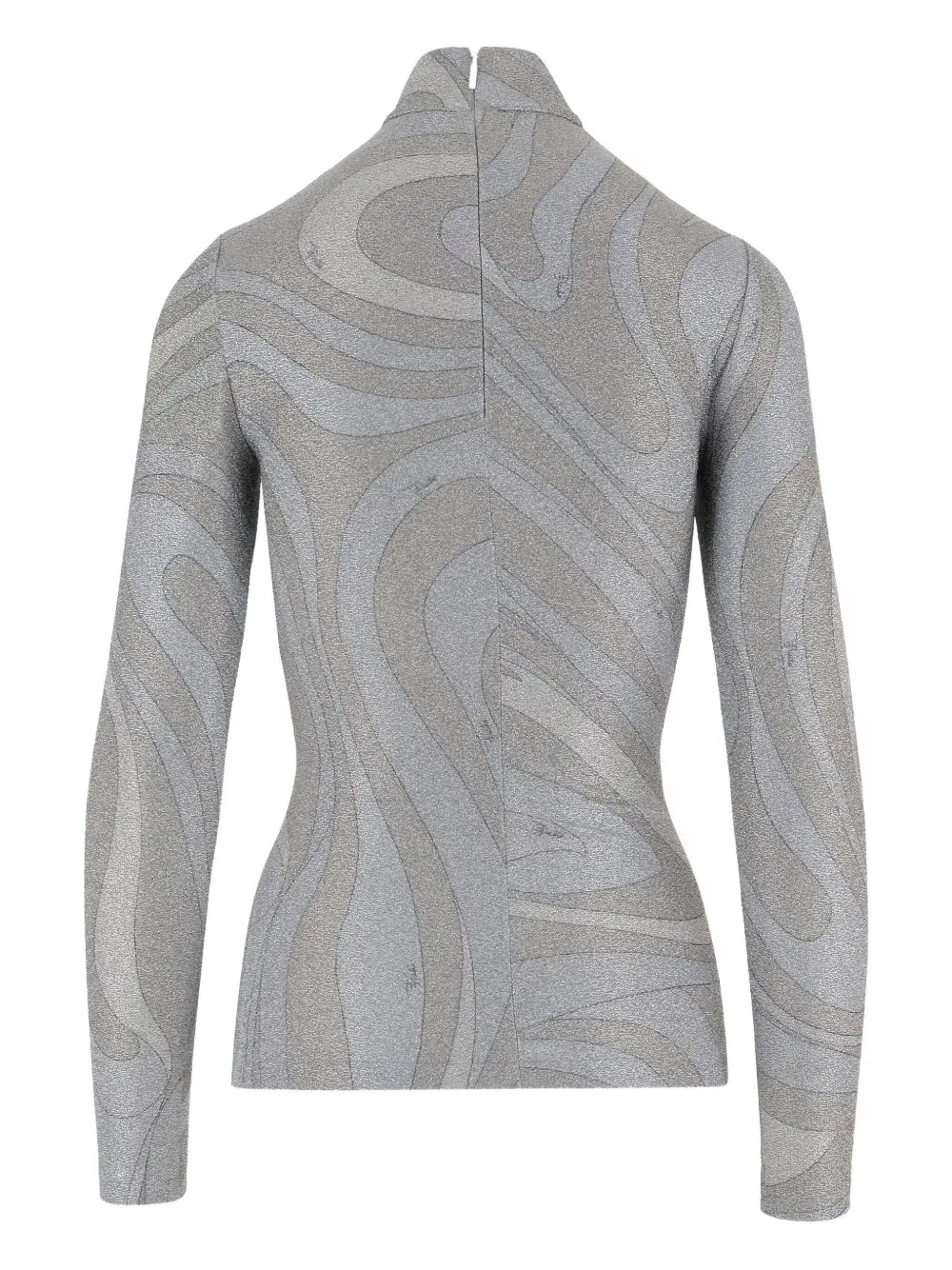 серебристый узорчатый джемпер с круглым вырезом и длинными рукавами