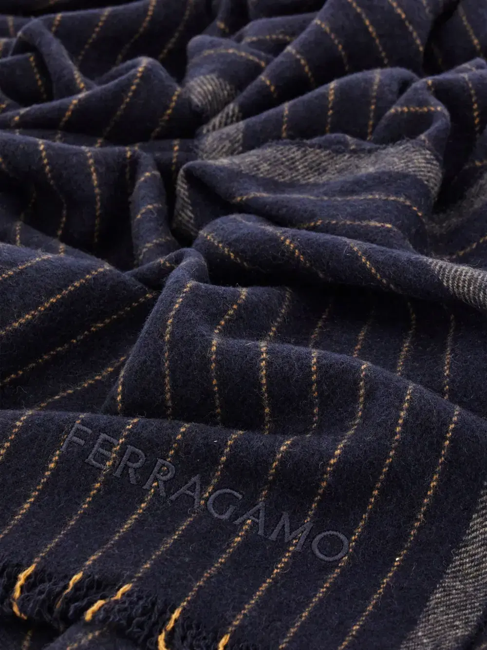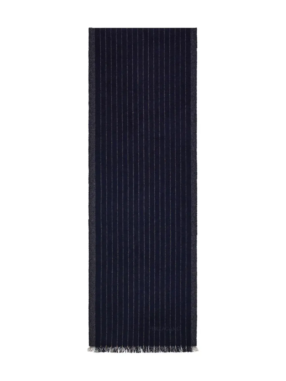 темно-синий шарф с полосатым узором, короткой бахромой, из шерсти и кашемира