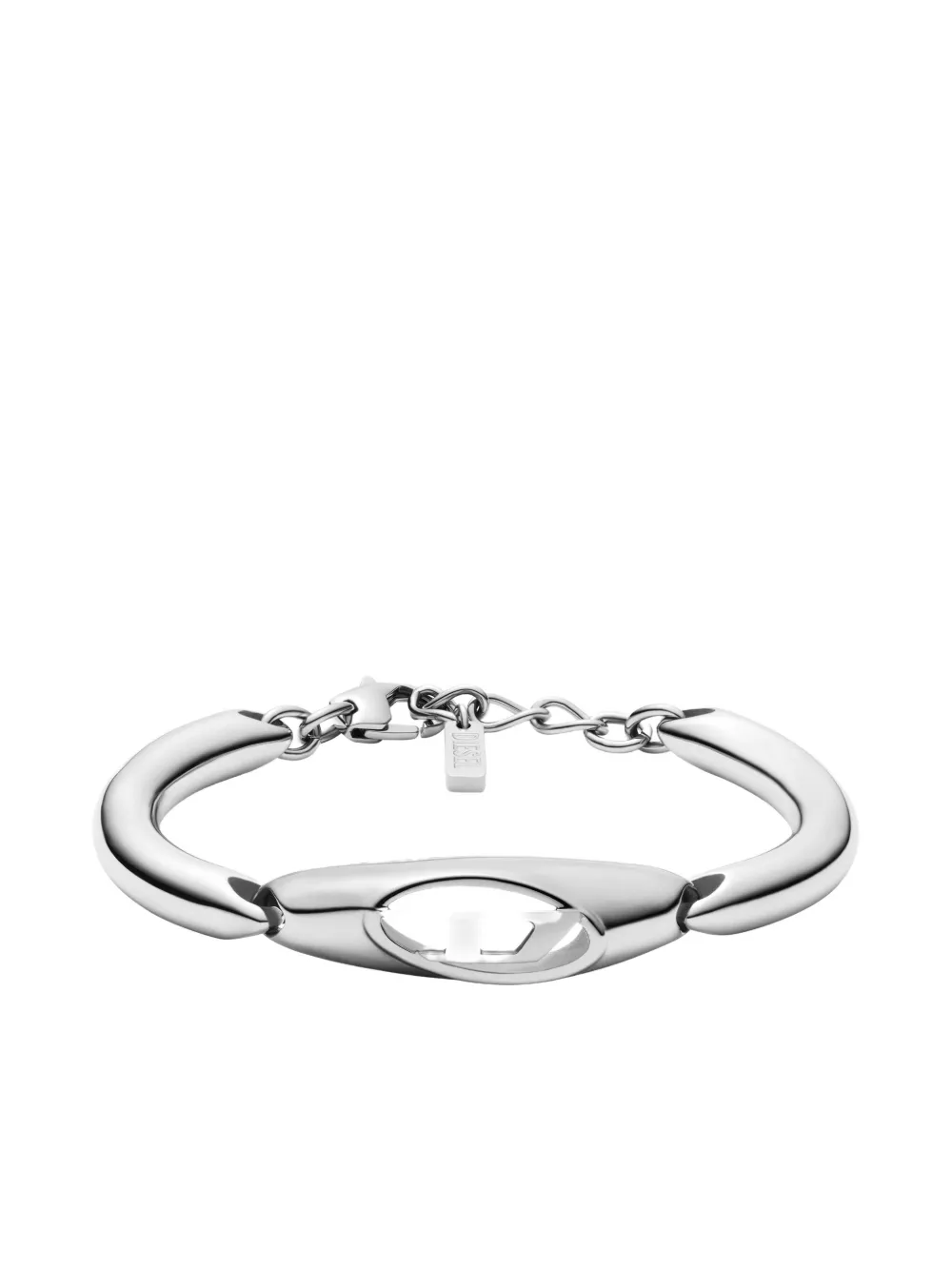 Браслет с овальным вырезом и логотипом Diesel, серебристый