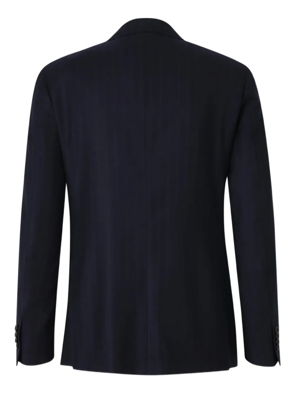 темно-синий с пинстрайпом, застежка на две пуговицы, боковые карманы, нагрудный карман, рукава на пуговицах