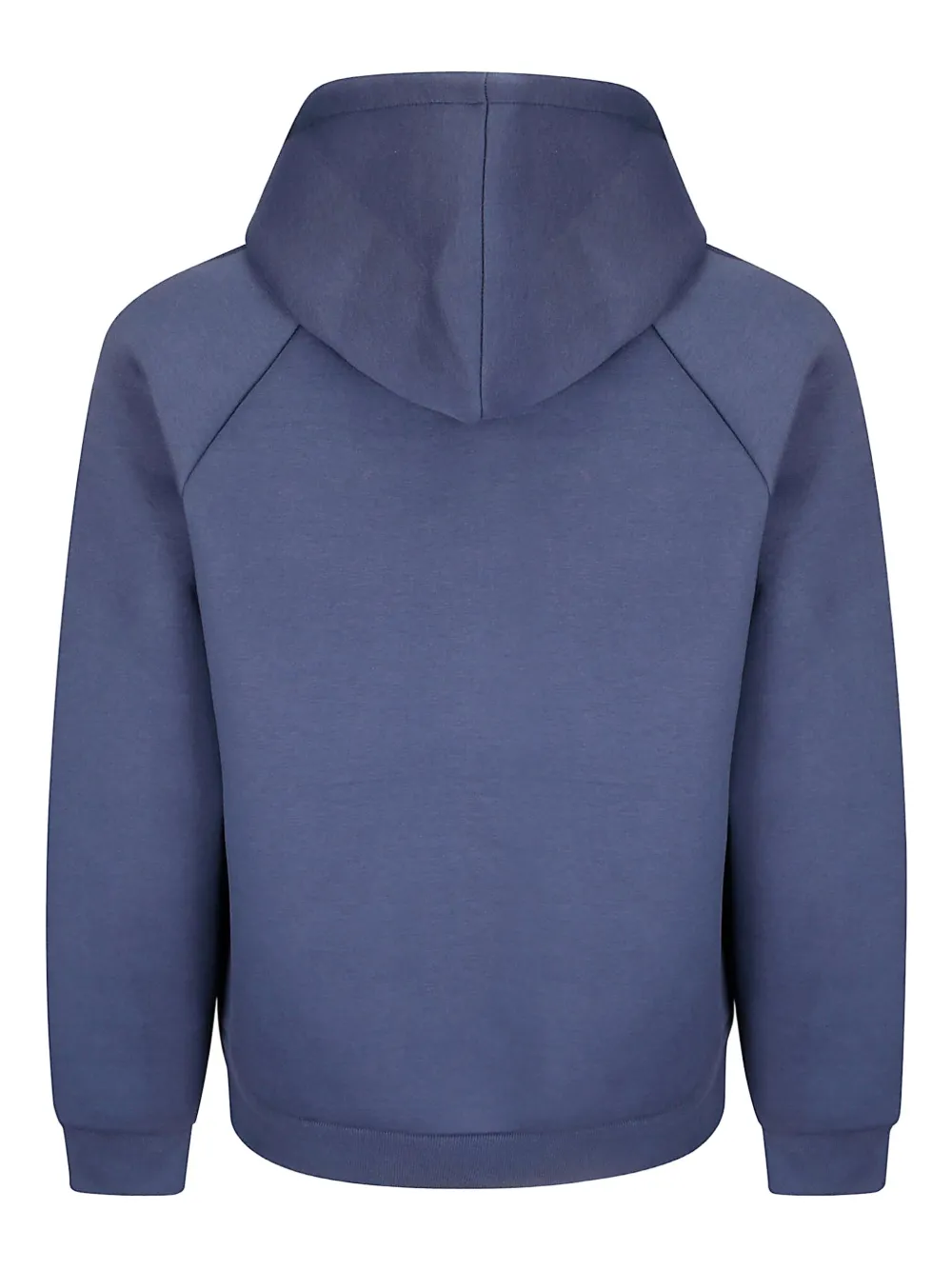 синий худи на завязках, застежка-молния, накладной карман, нашивка с логотипом, ребристый низ