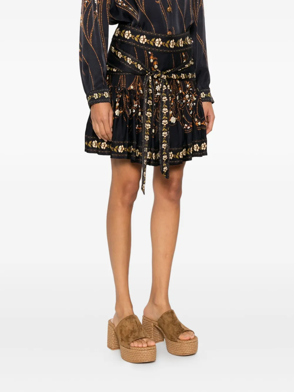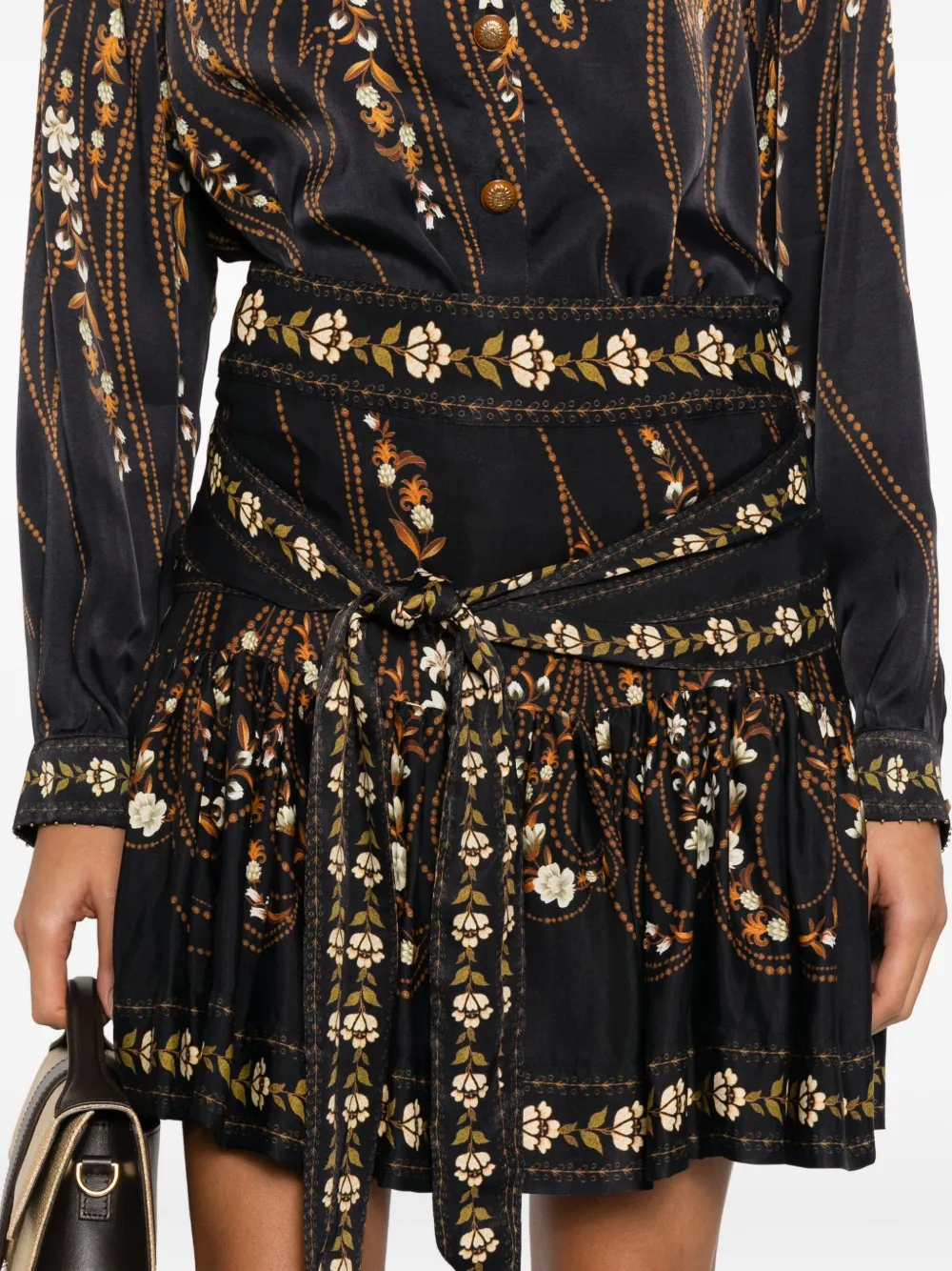 черный с цветочным принтом, с деталями в виде завязок, с отделкой по краю, с тональной строчкой