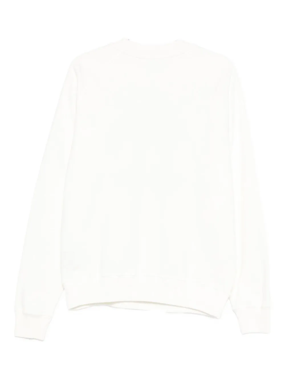 белый свитшот с круглым вырезом, длинными рукавами и принтом логотипа