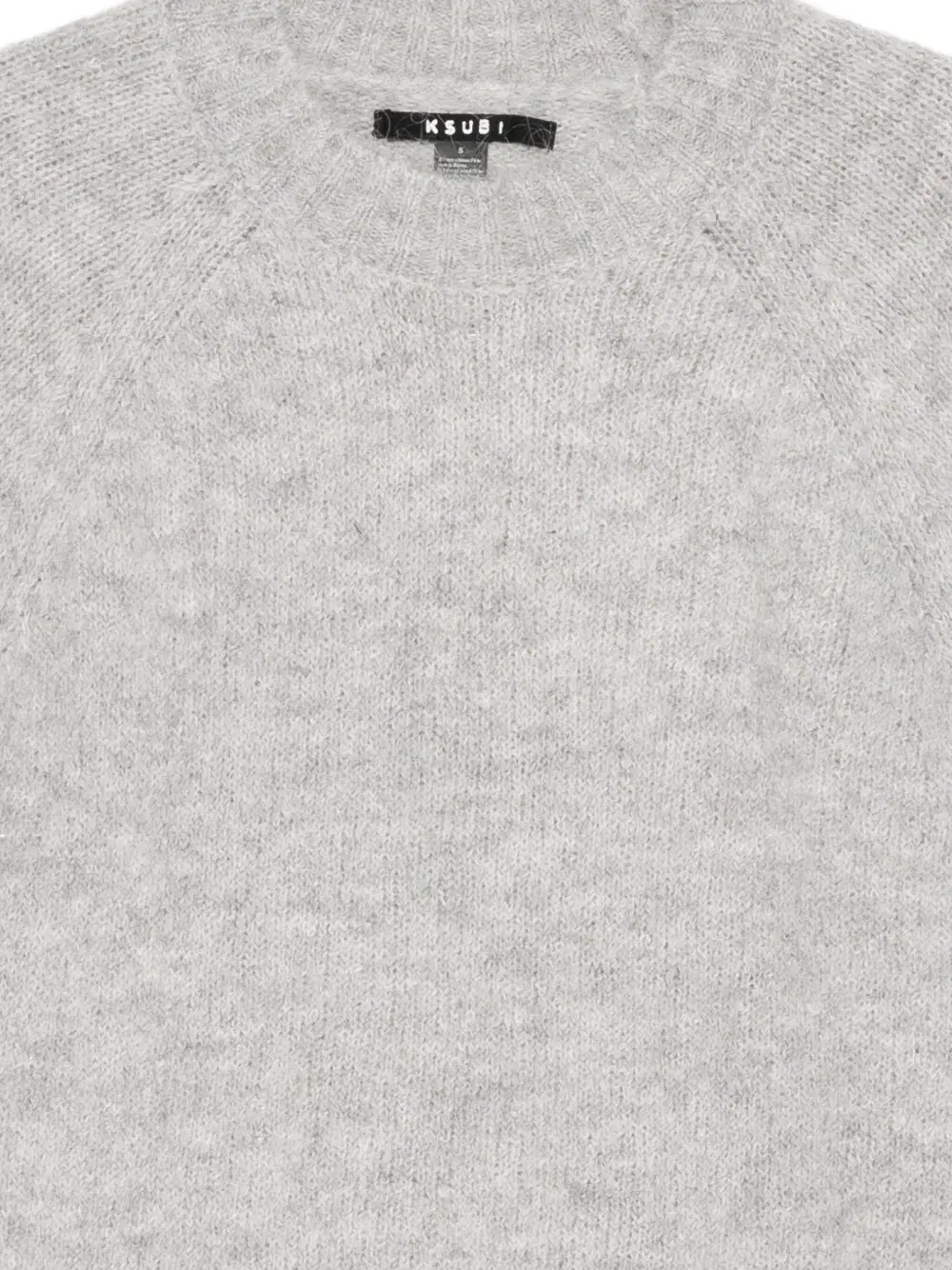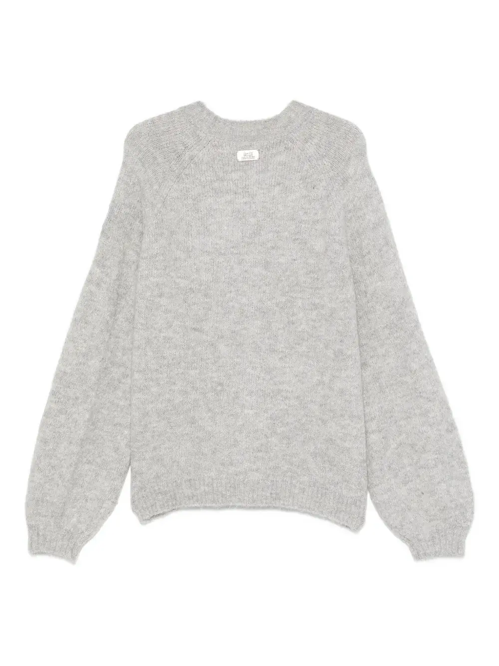 серый свитер из смеси альпаки и шерсти с круглым вырезом, длинными рукавами, нашивкой и ребристым низом