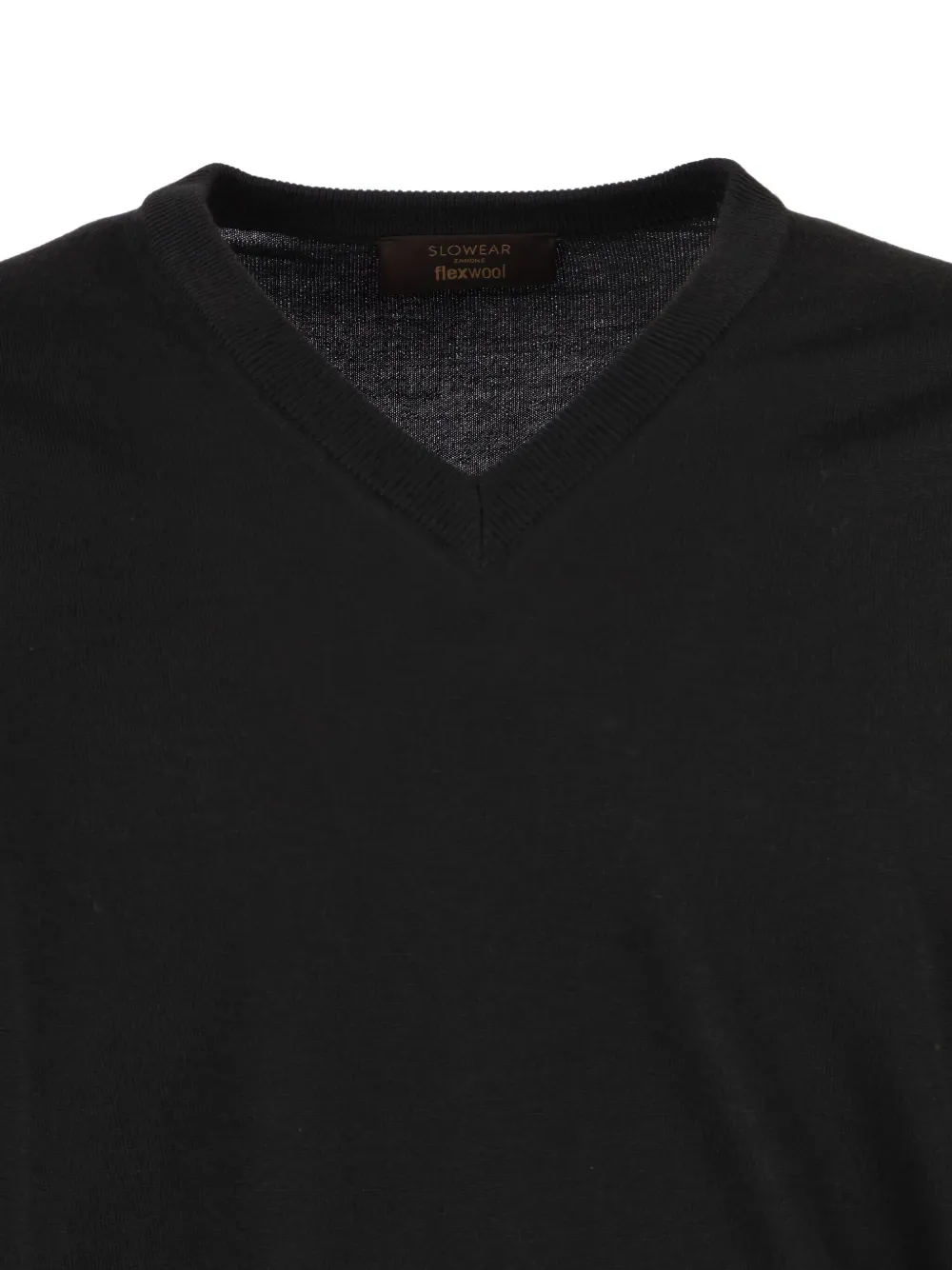 черный тонкий трикотаж с V-образным вырезом и длинными рукавами