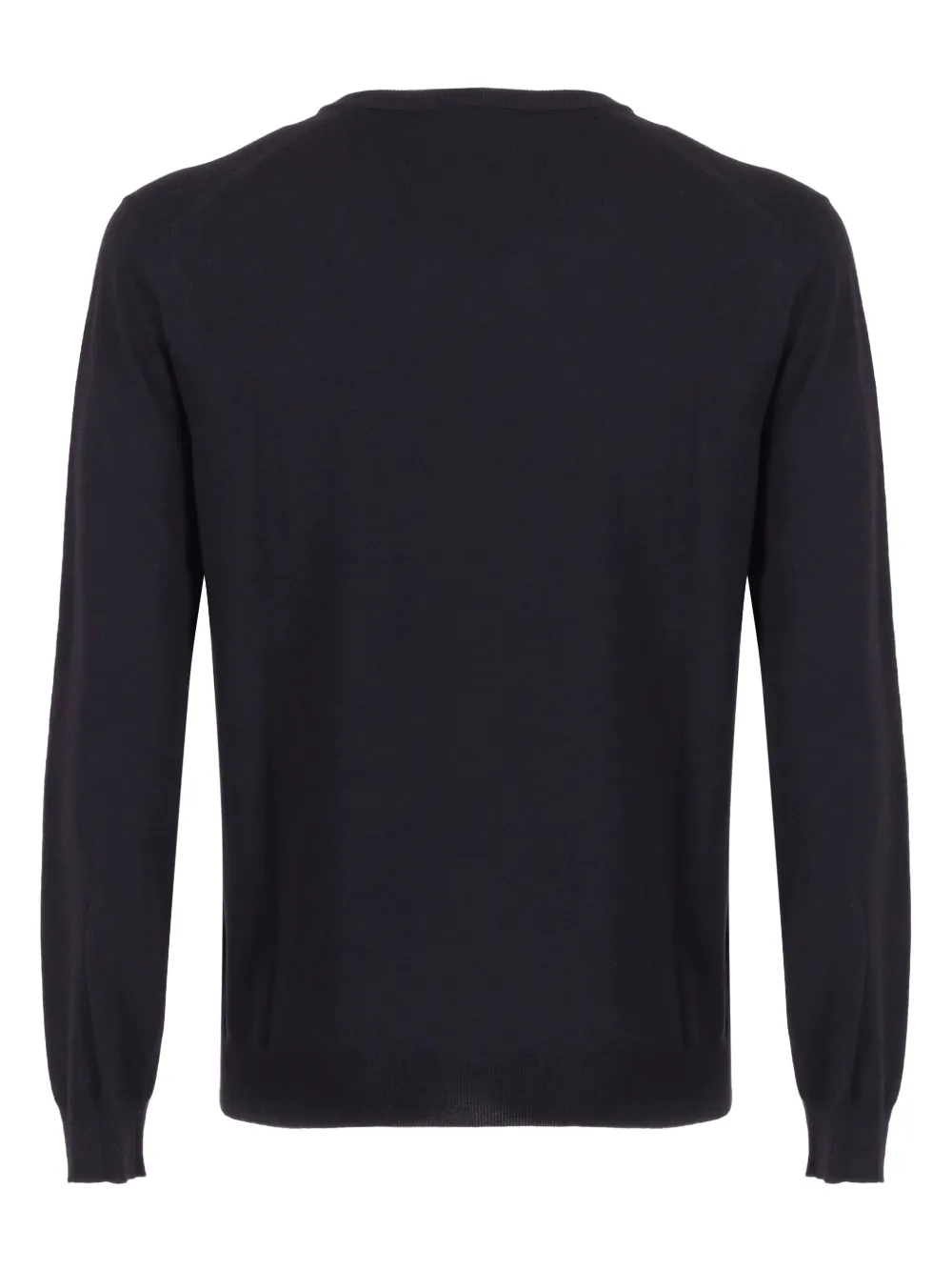 темно-синий тонкий вязаный джемпер с V-образным вырезом и длинными рукавами