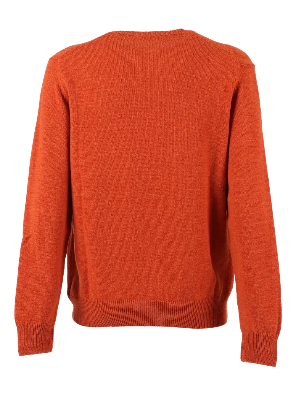 оранжевый свитер с круглым вырезом, длинными рукавами, ребристыми манжетами и нижним краем