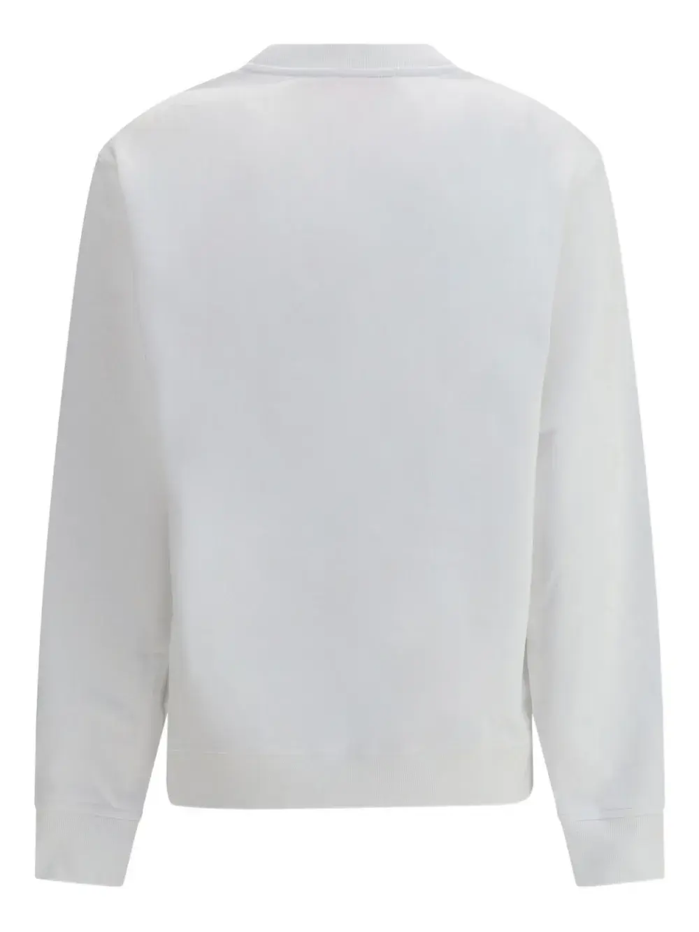 белый свитшот с логотипом, круглый вырез, длинные рукава, ребристый низ, ребристые манжеты