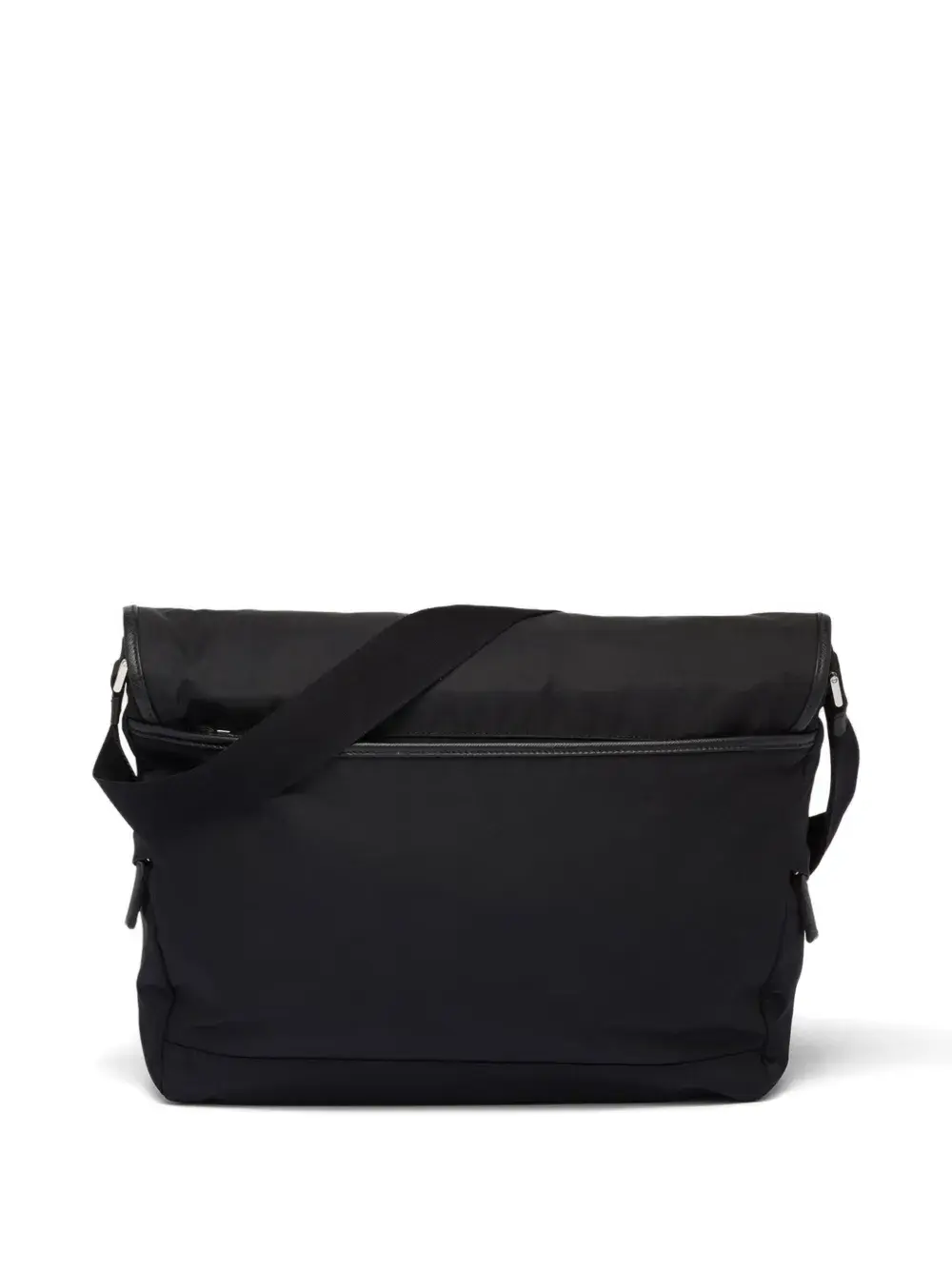 Треугольный эмалированный логотип, регулируемый ремень на плечо, застежка с клапаном спереди, карман на молнии спереди, застежка с двумя пряжками, основное отделение, внутренний карман на молнии, прорезной карман сзади и серебристая фурнитура.