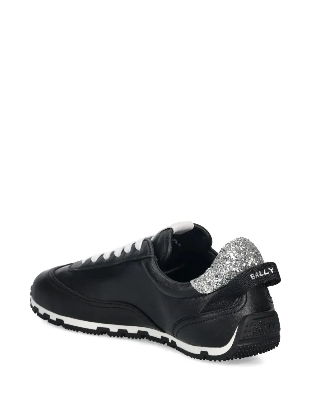 черные детали с блестками, логотип в виде надписи, шнуровка, подошва из резины, петля на пятке