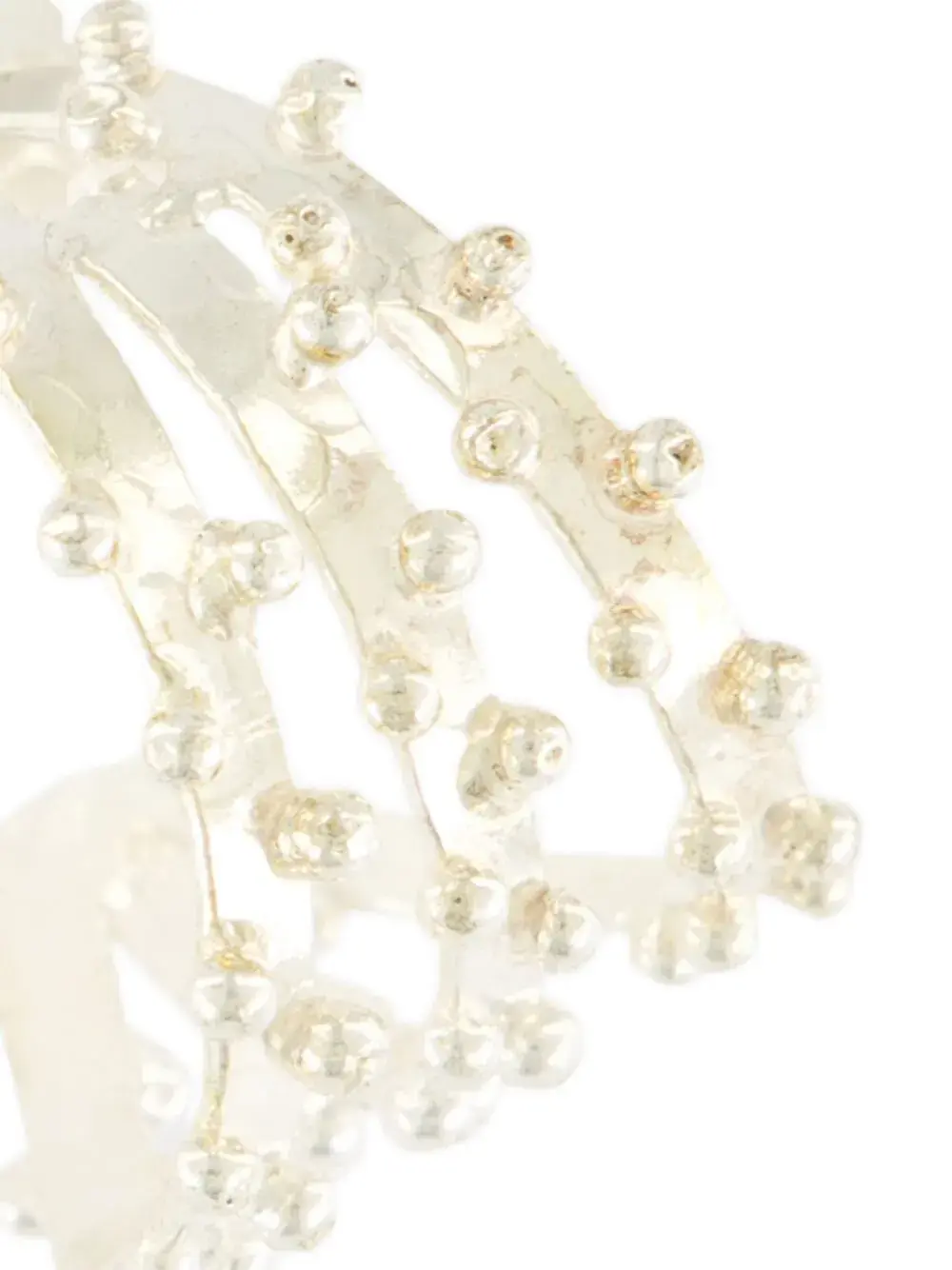 серебристый декор из бусин, застежка-гвоздик, изогнутый дизайн, открытая форма