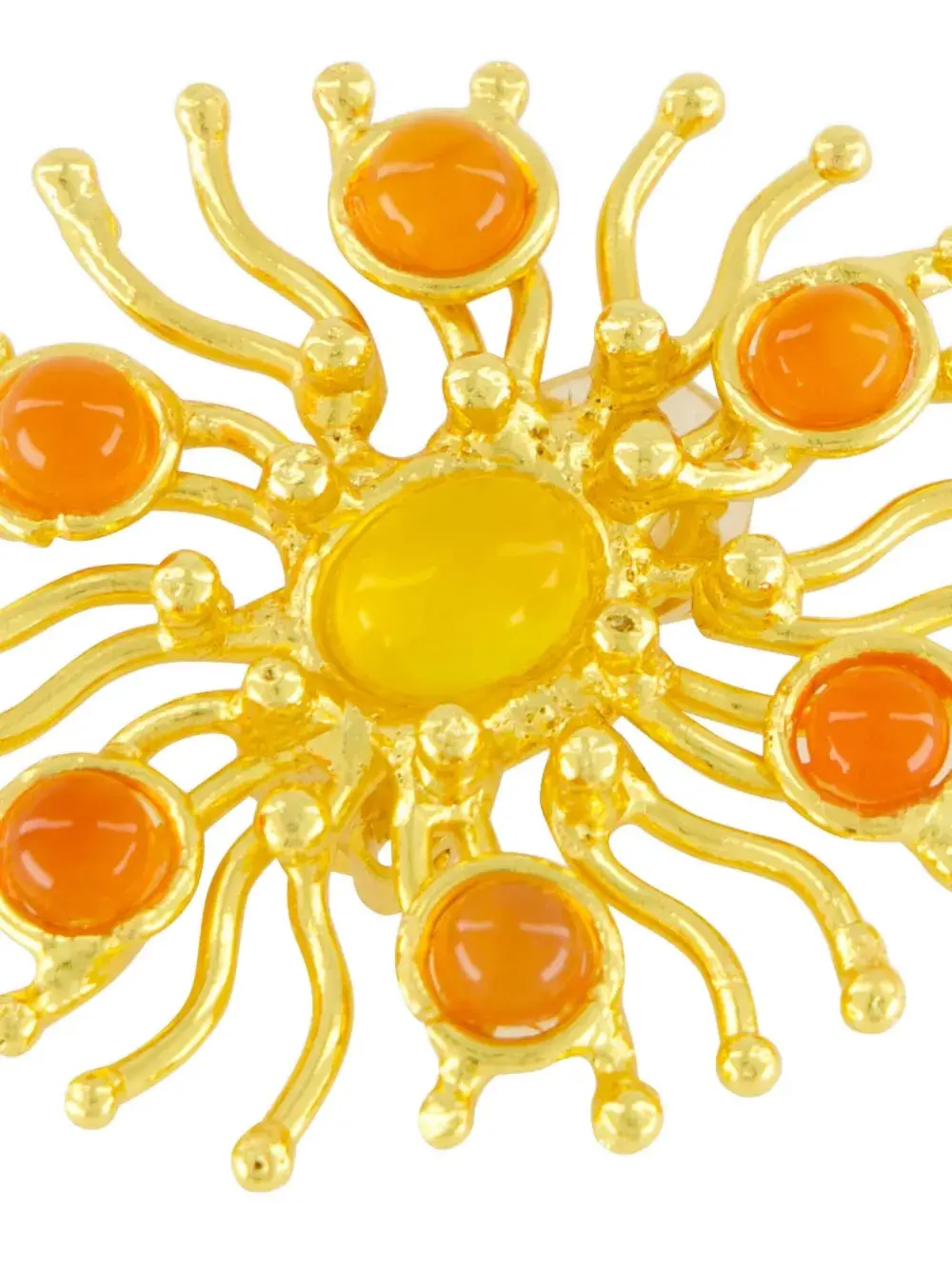 золотое украшение с сердоликом, застежка-клипса, круглое украшение в виде солнца