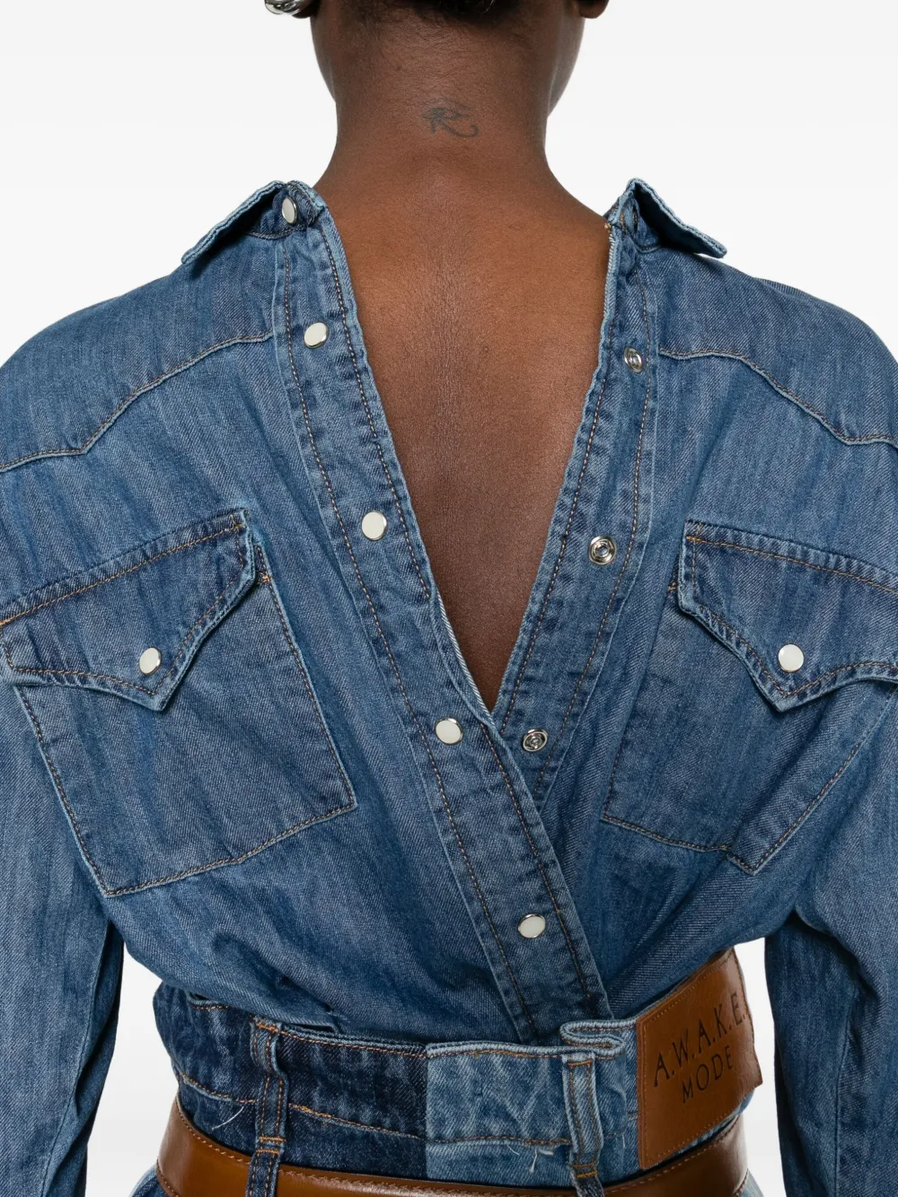 Джинсовая рубашка на пуговицах A.W.A.K.E. Mode, синий