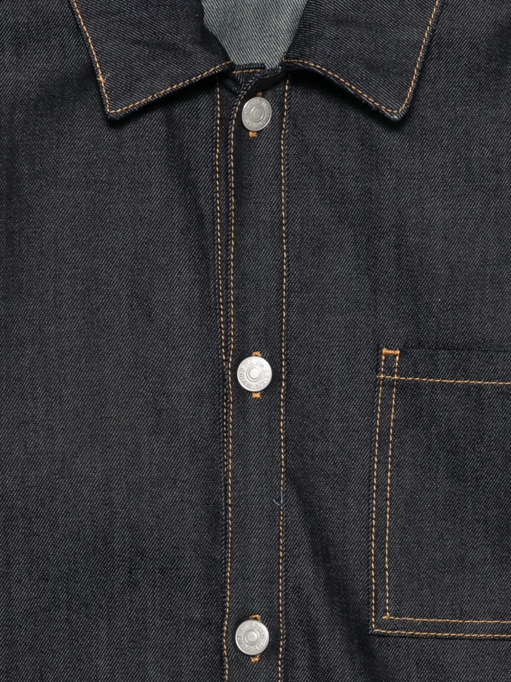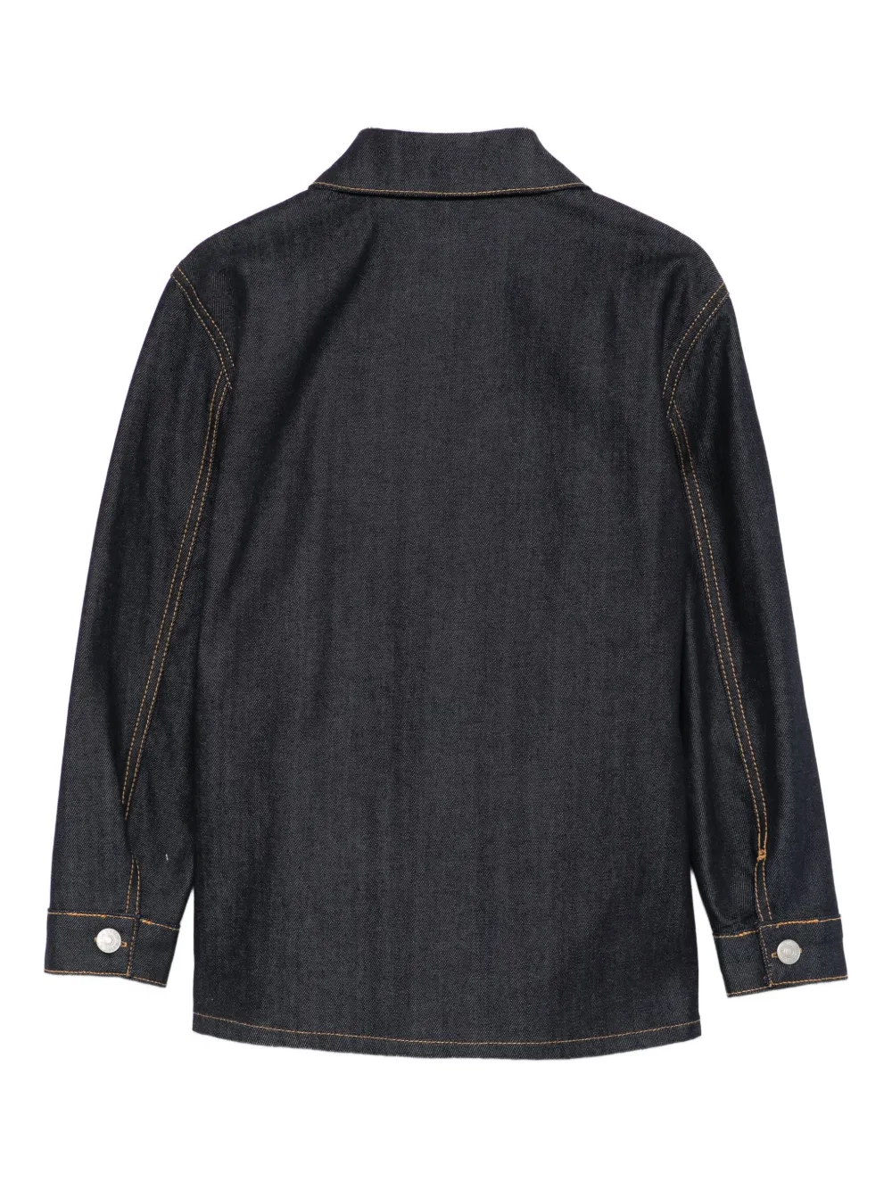 синяя рубашка с застежкой на пуговицы, нагрудным карманом, отложным воротником, длинными рукавами и декоративной отстрочкой