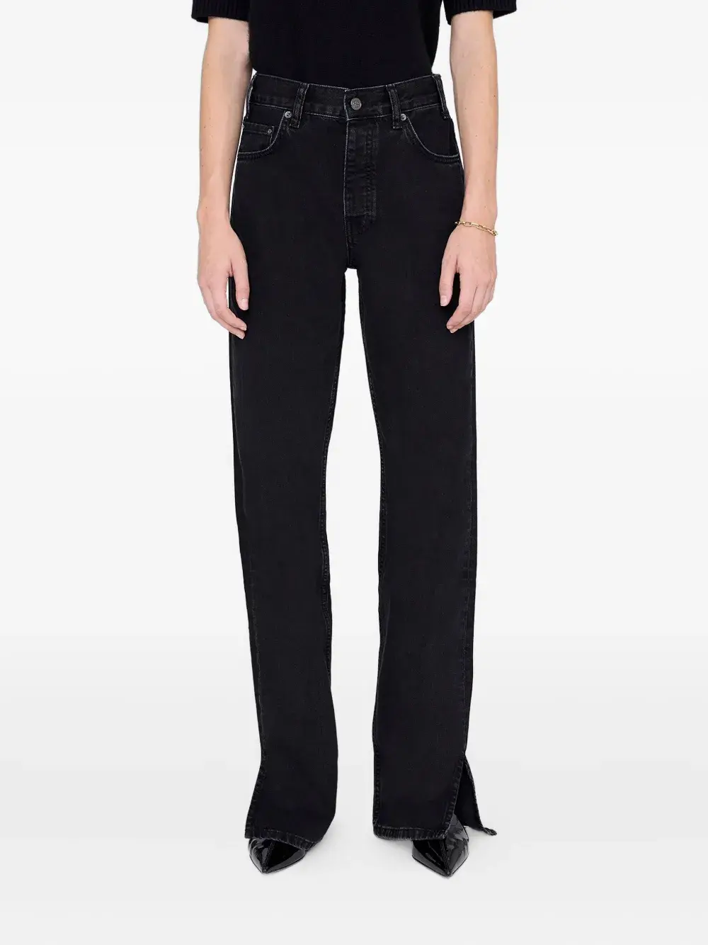 черные, пять карманов, шлевки для ремня, застежка на пуговицу, разрезы на манжетах
