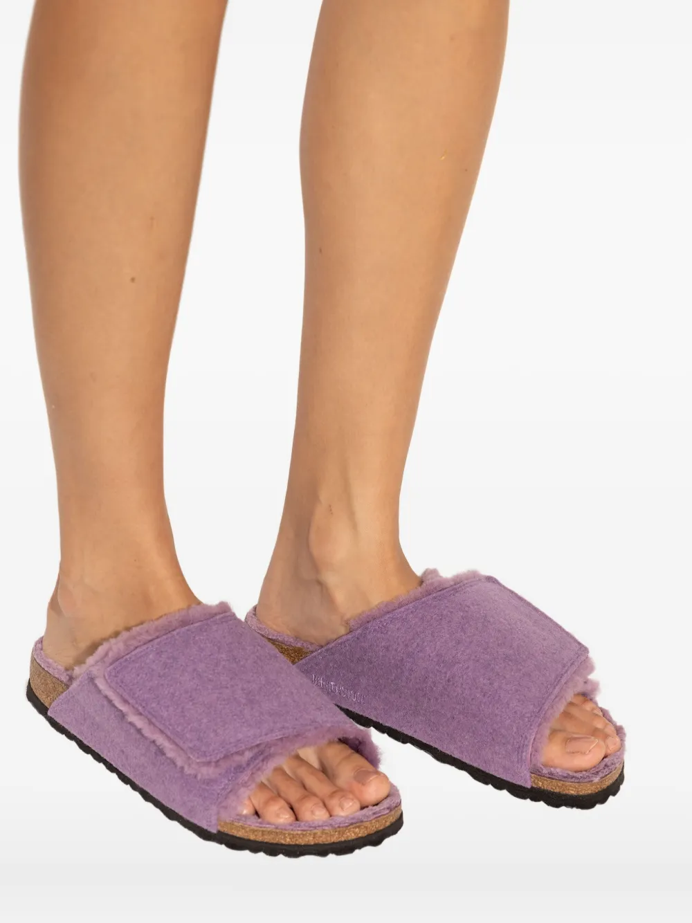 фиолетовые сандалии с застёжкой на липучке, пробковой стелькой и плоской подошвой